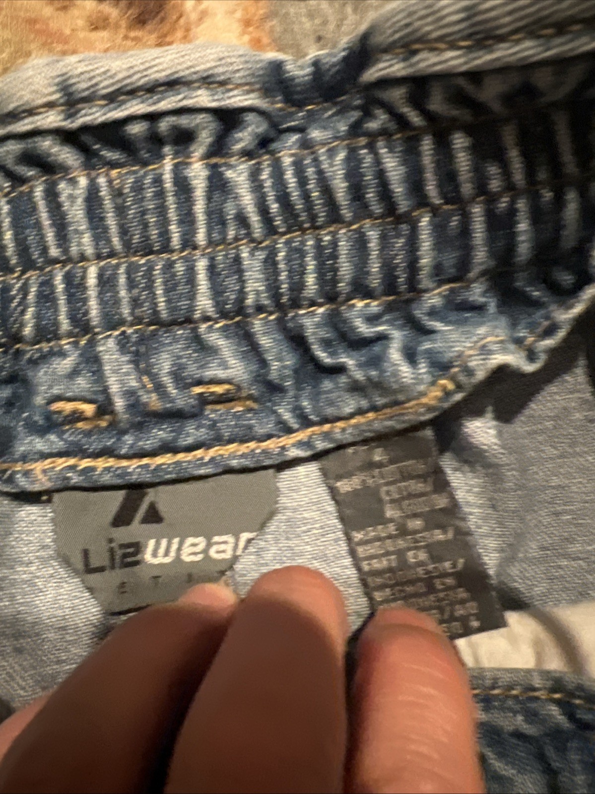 Vintage Liz Wear Denim Jean Full Maxi Skirt Size 4 Western Modest Button Design
