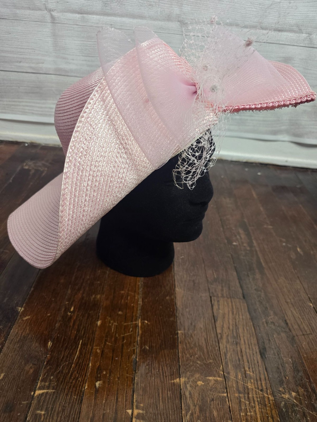 как выглядит Vintage Pastel Pink Derby Church Hat Tulle фото