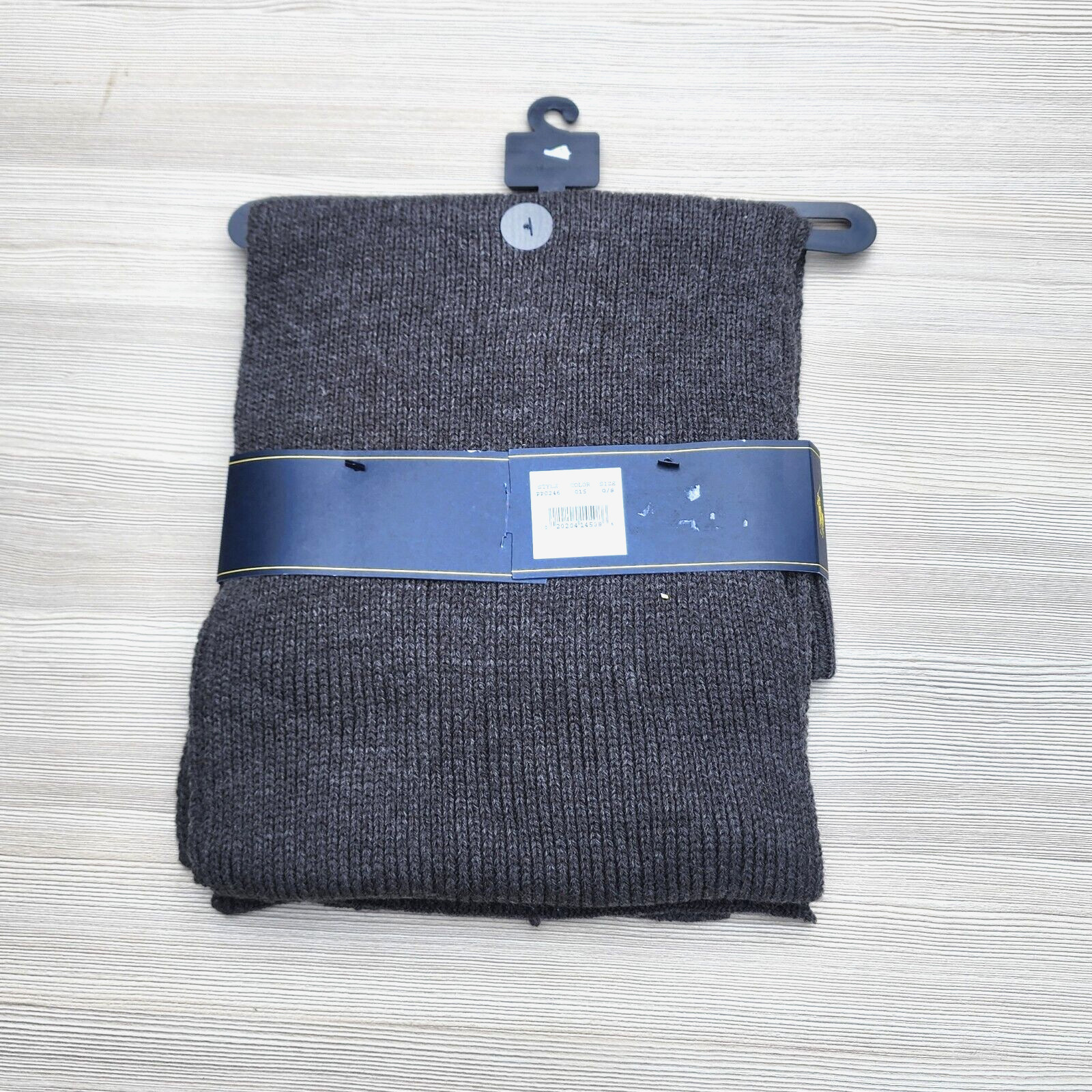 как выглядит Polo Ralph Lauren Grey Navy Blue Scarf Beanie Hat 2 Piece Set NWT фото