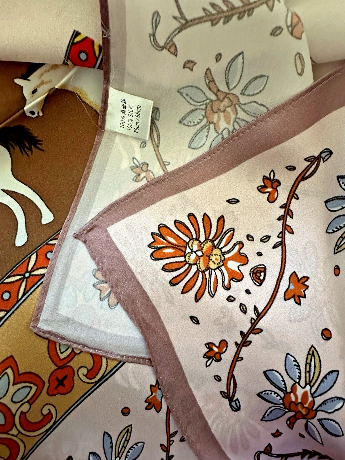 как выглядит 35"x35"Horse under Tree Print Pure Mulberry Satin Silk 14momme Scarf 88x88cm590 фото