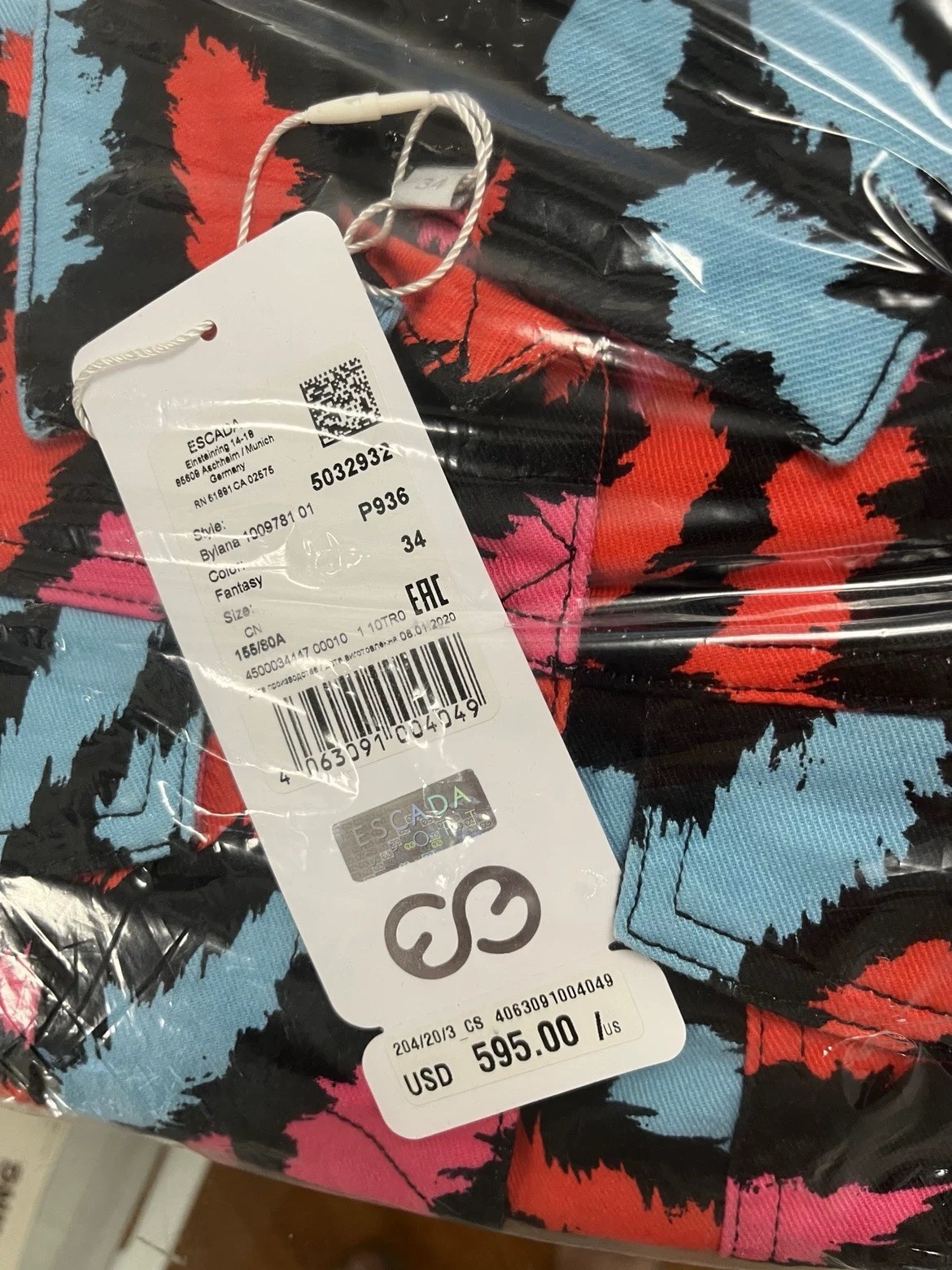 ESCADA Women's Multi Printed Button-down Denim Jean Jacket Top 34 Nwt