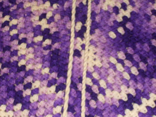 Vintage Handmade Knitted Poncho Shawl Purple/Ivory Fringe Crochet 70s Youth Or S
