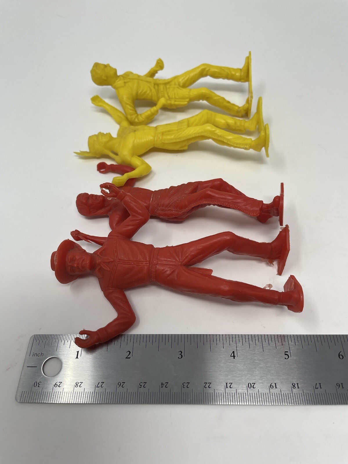 как выглядит Lot Vintage Plastic Cowboys Indians Figures 5 Yellow Red MARX фото
