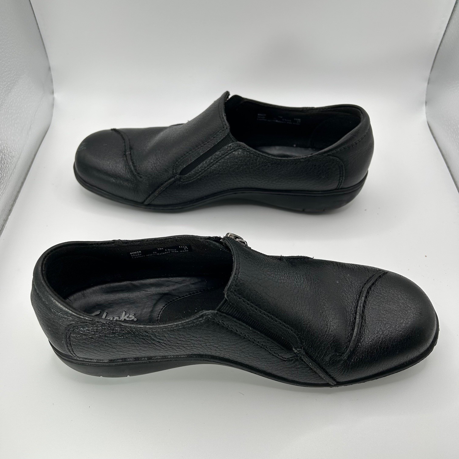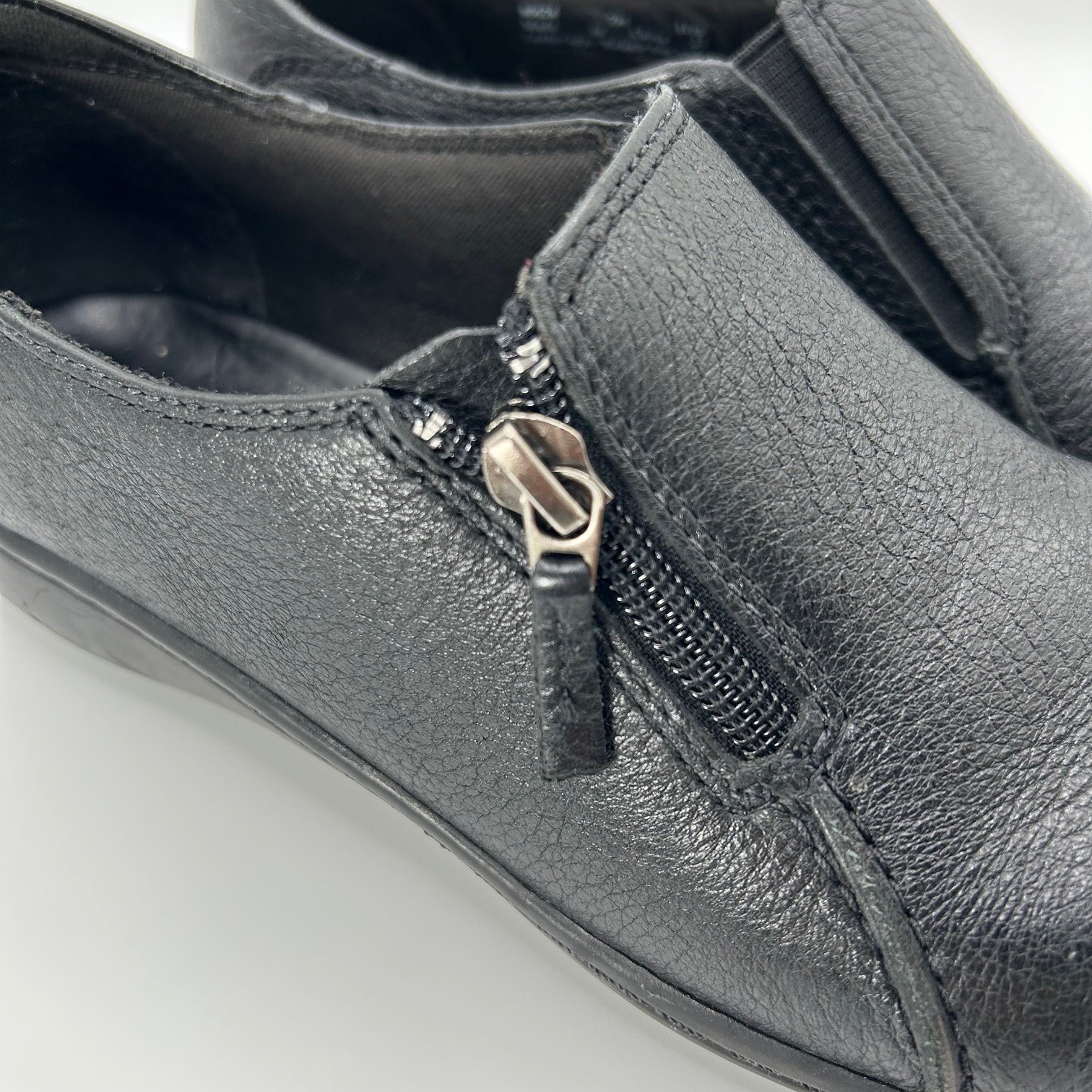 как выглядит CLARKS BENDABLES COMFORT LOAFERS 80628 Black Leather Side Zip Womens 7 M фото