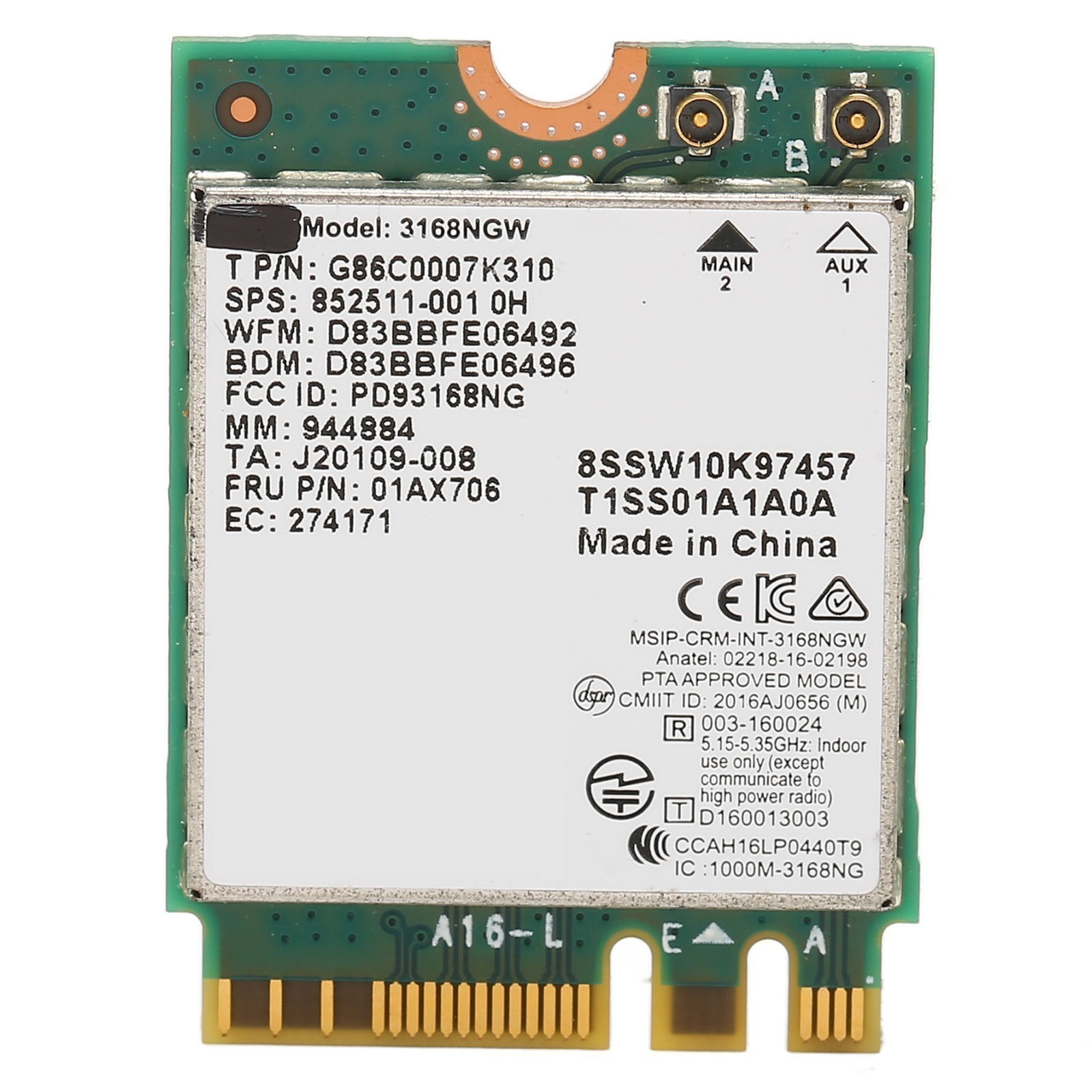 Wireless Module 3168NGW AC NGFF M.2 2.4G 5G Dual Frequency 600Mbps BT 4.2 WIFI