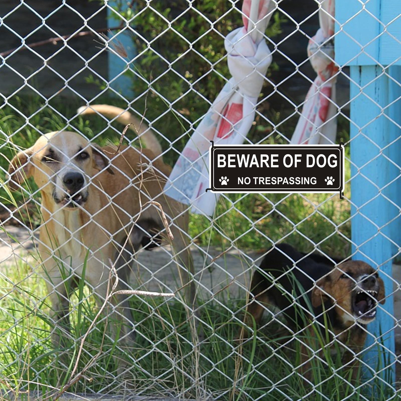 2 Pack Beware of Dog Signs Metal No Trespassing Signs for Yard Outdoor