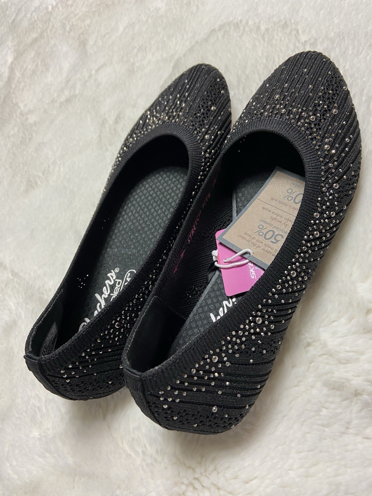 Skechers Cleo 2.0 Vegan Recycled Knit Sparkle Flats Glitzy Daze Black