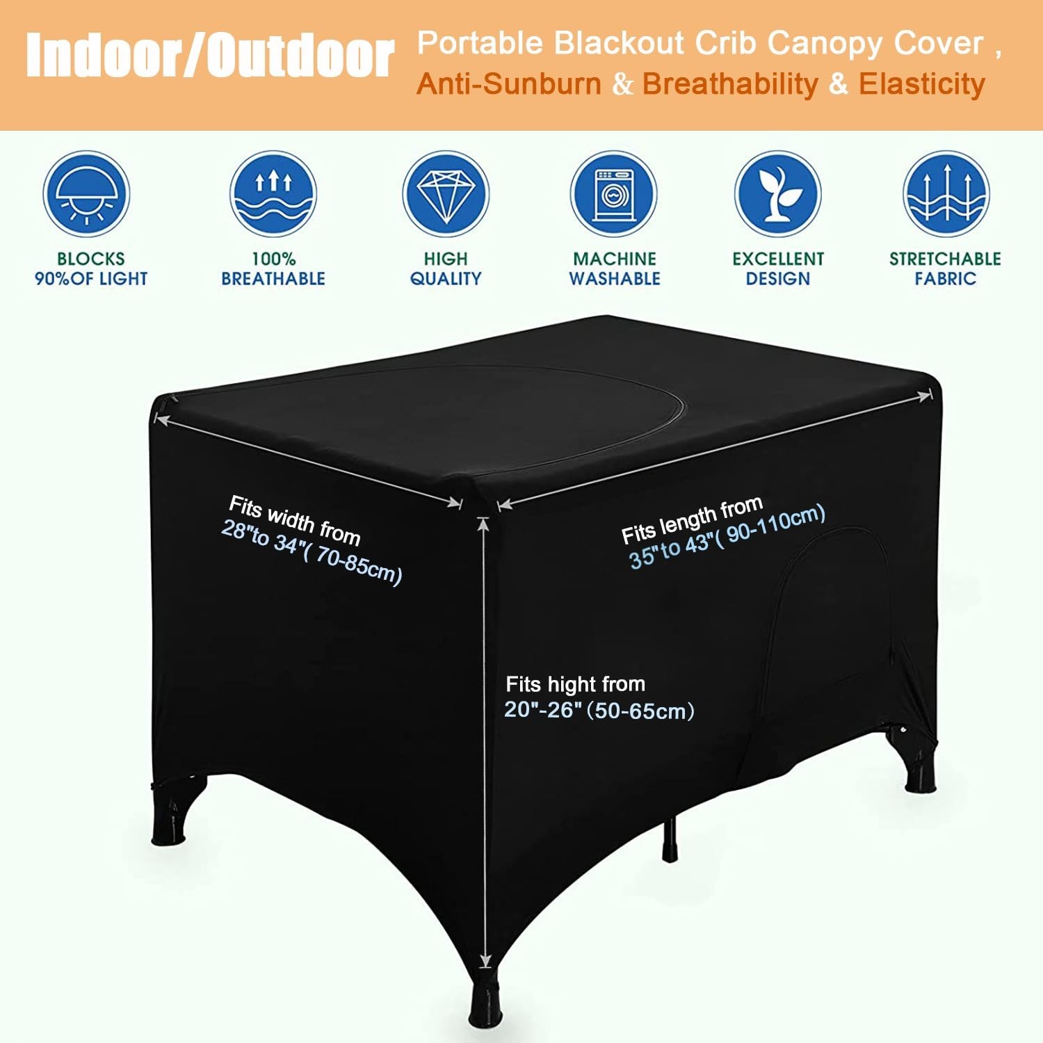 Blackout Crib Canopy Cover Stretchy Breathable Travel Netting Tent and Shade ...