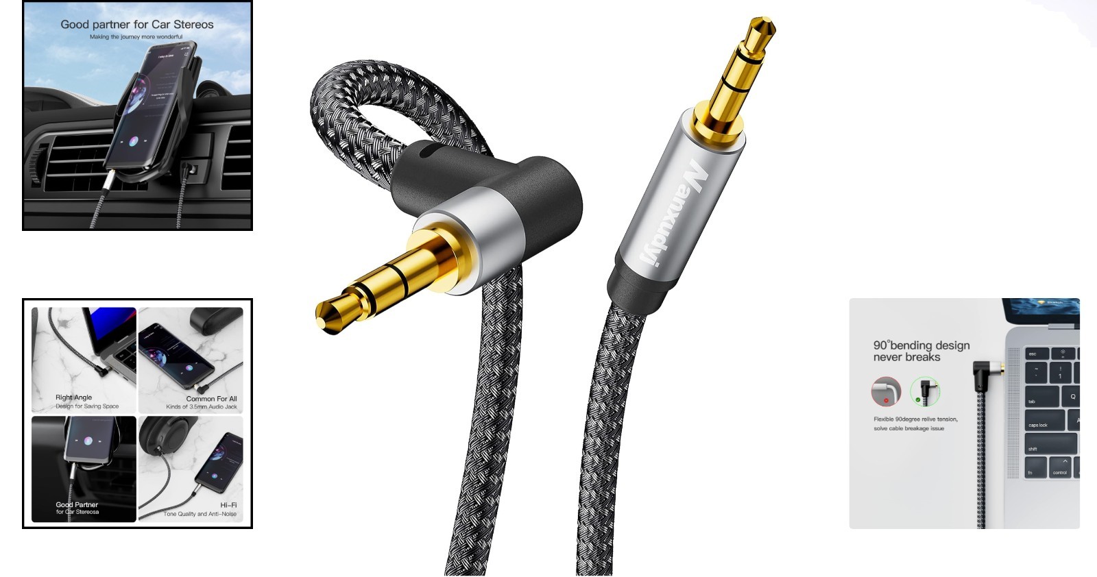 Versatile 3.5mm Audio Cable 6ft with 90-Degree Connector - High Fidelity Sound