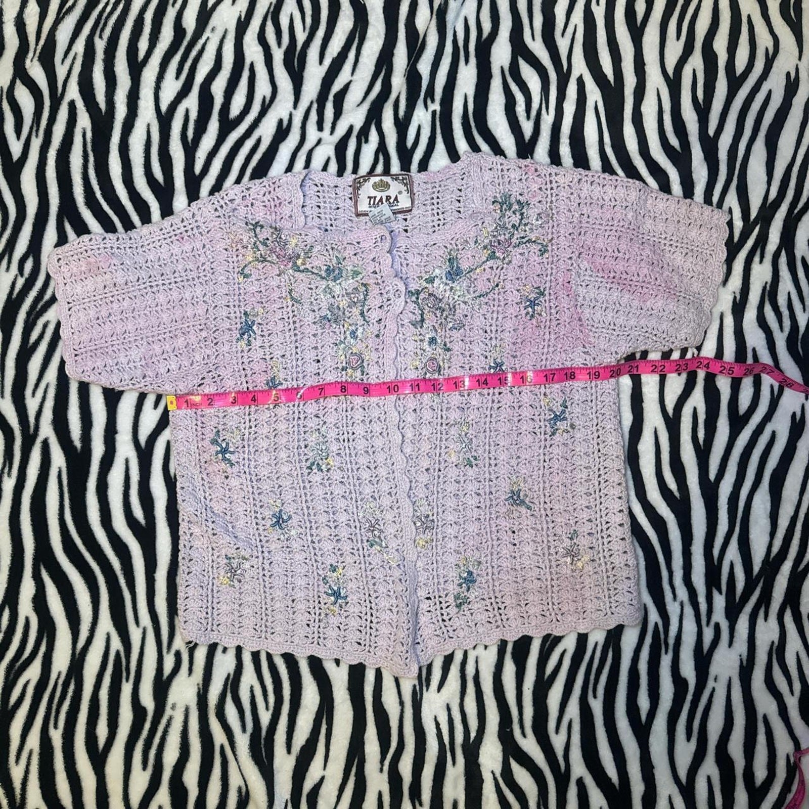 как выглядит Vintage 1990s crochet embroidered cardigan thrashed stained cottage grandma FLAW фото