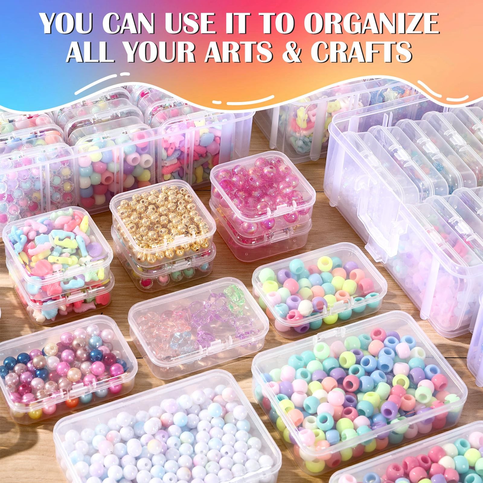 Bead Organizer Box, 56 Pcs Small Plastic Containers with Lids and 3-Tier Stac...