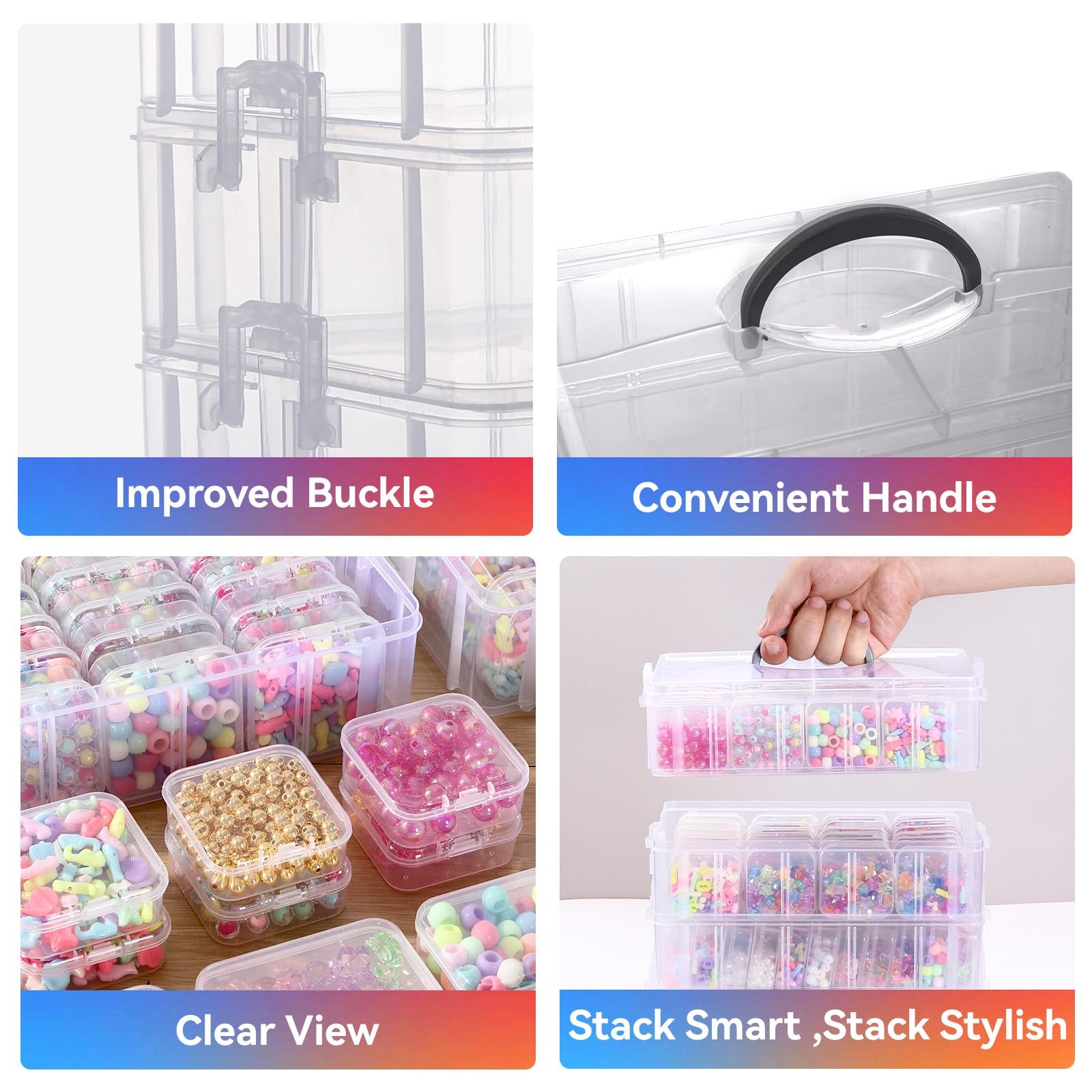 Material Feature: Durable, Transparent, Stackable