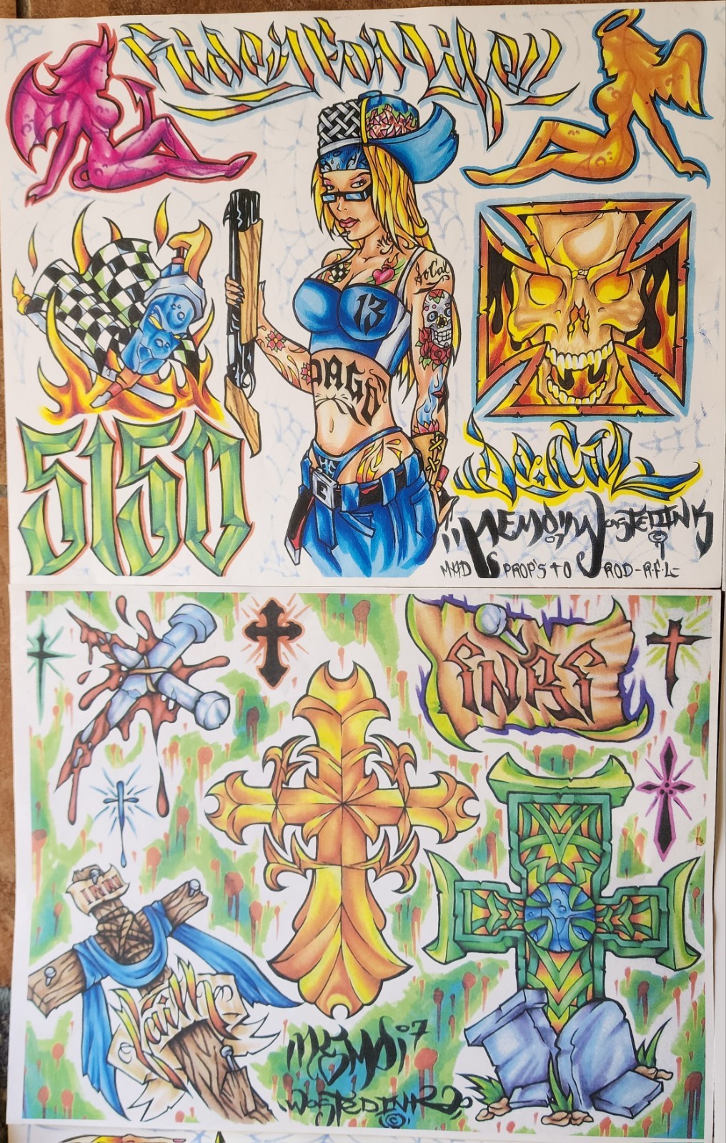 6 vintage produx copies wasted ink cholo gangster neotraditional tattoo flash