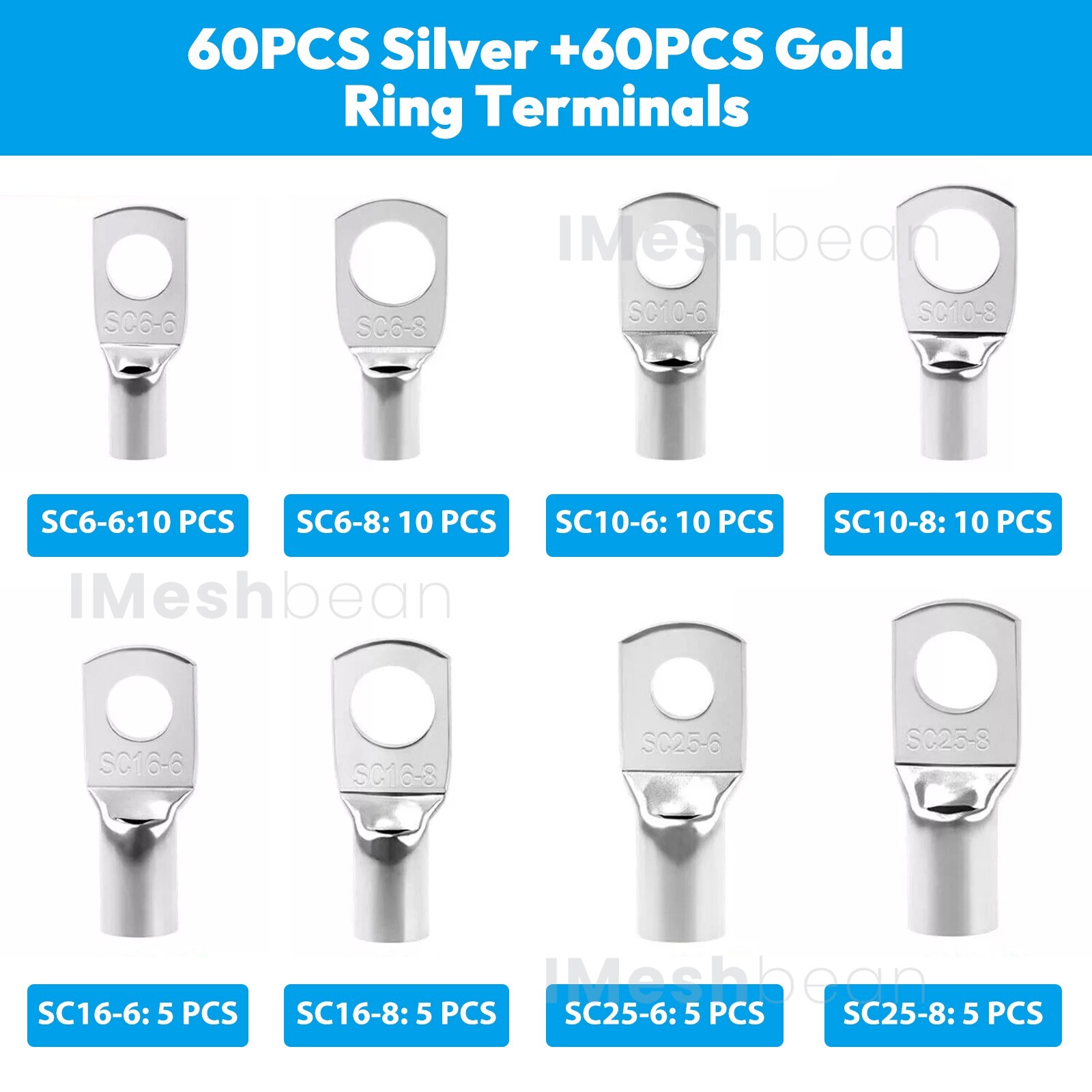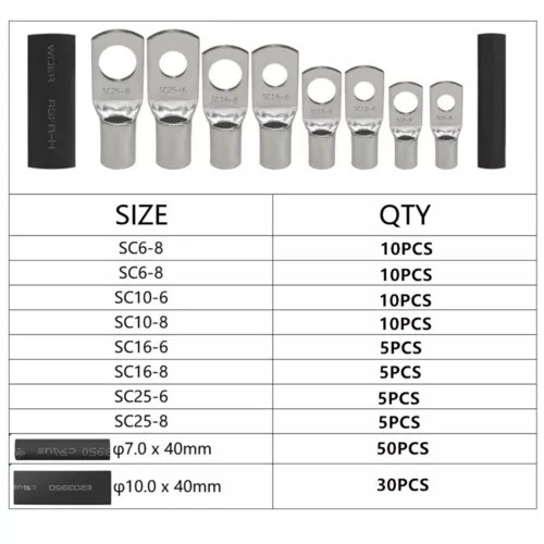 280PCS Car Copper Lug Ring Terminals Cable Electrical Wire Crimp Connectors Kit