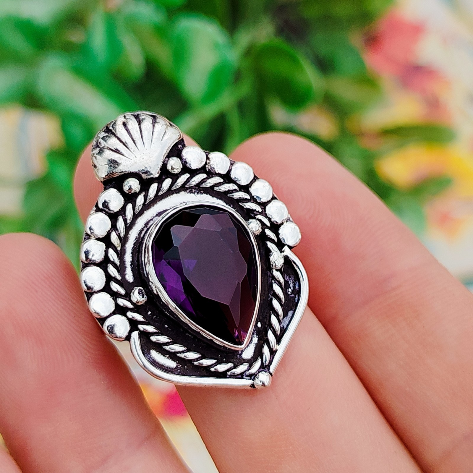 как выглядит Amethyst Gemstone Ring Silver Ring 925 Sterling Silver Ring Womens Jewelry фото