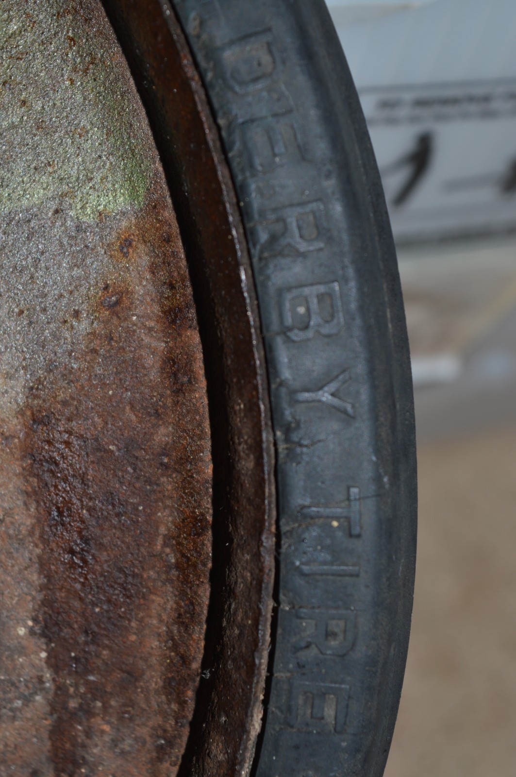12 ANTIQUE OFFICIAL SOAP BOX DERBY RUBBER TIRES METAL Green Wheel