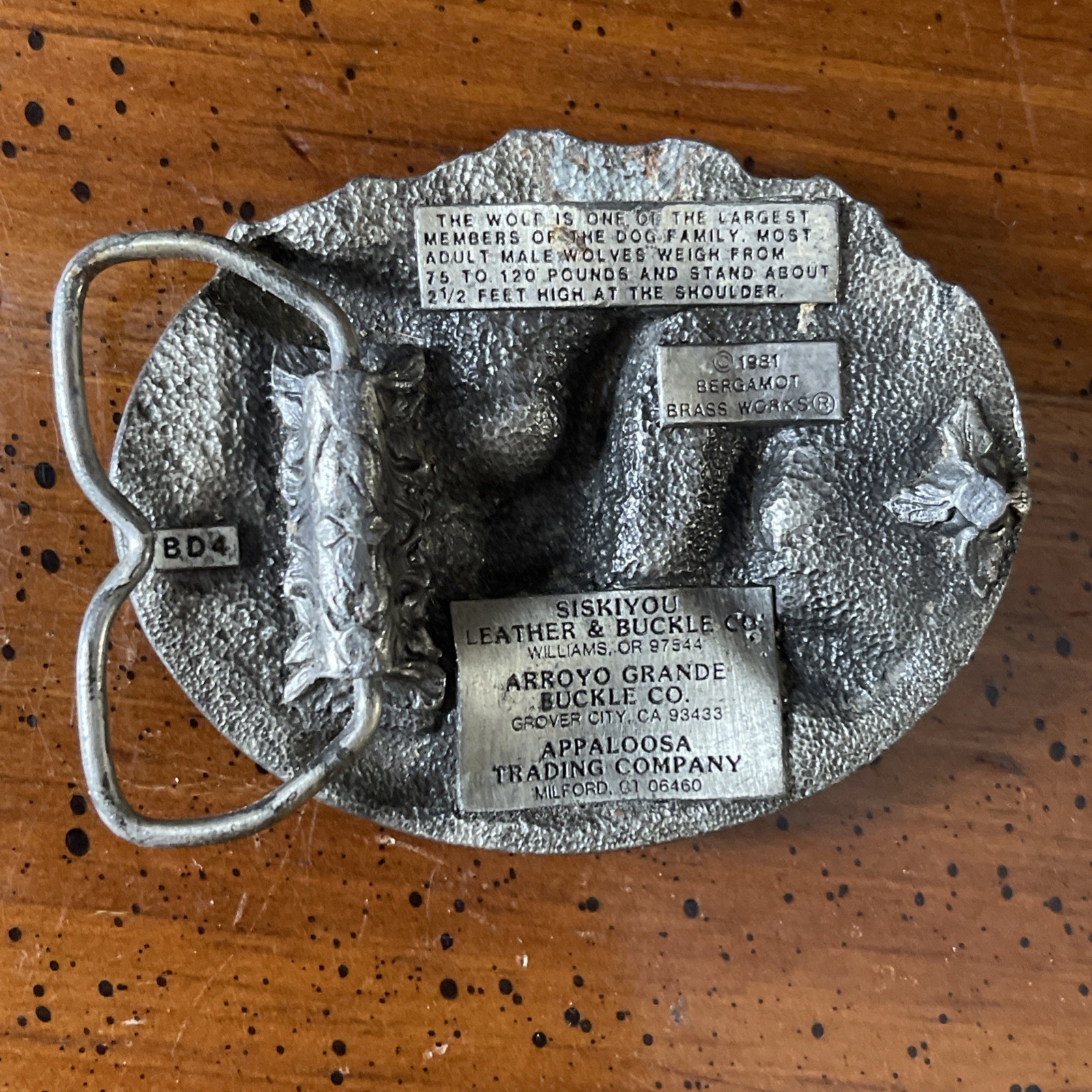 как выглядит VTG DETAILED HOWLING WOLF PACK BELT BUCKLE VINTAGE 1981 SISKIYOU PEWTER BRASS фото