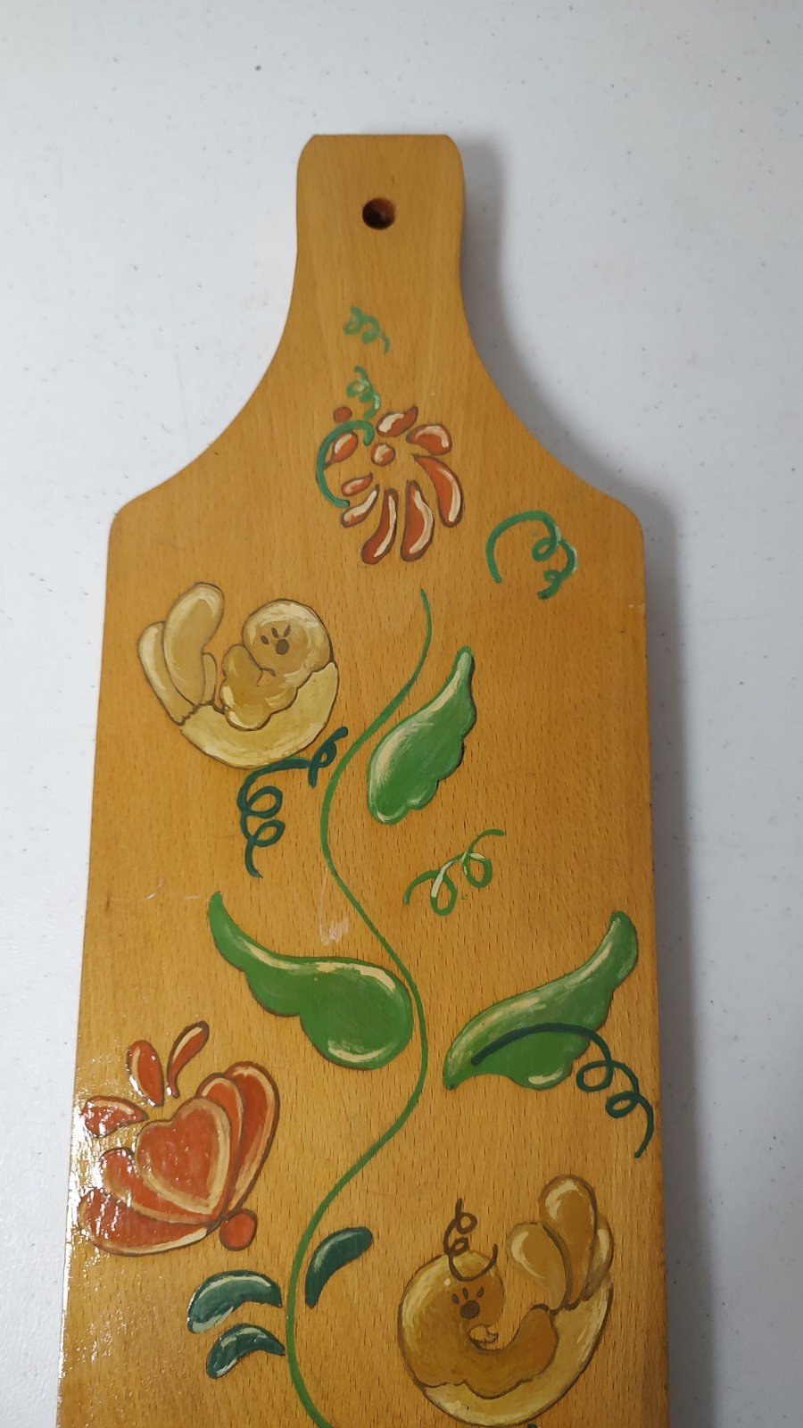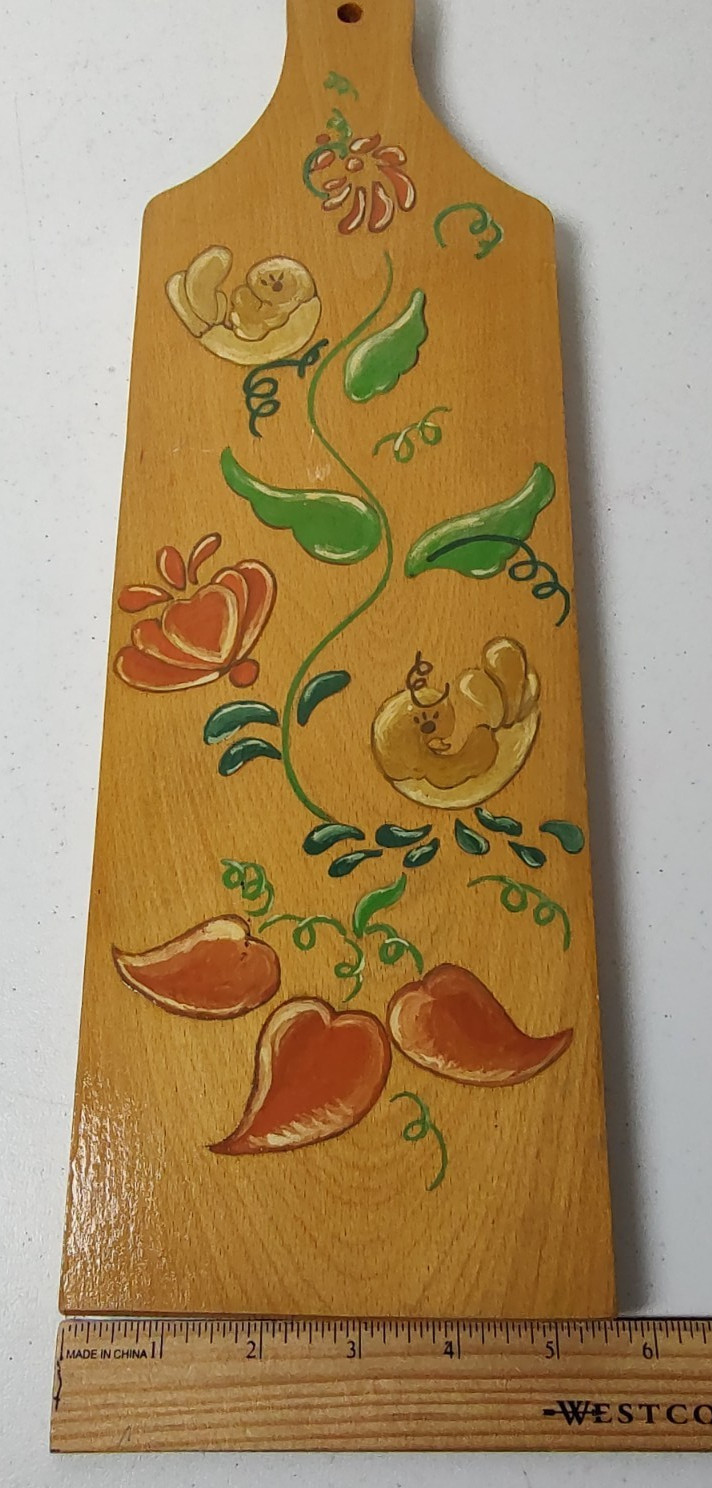 • Vintage Rosemaling Wood Cutting Board Folk Art Wall Hanging Plaque 18" by 5.5"