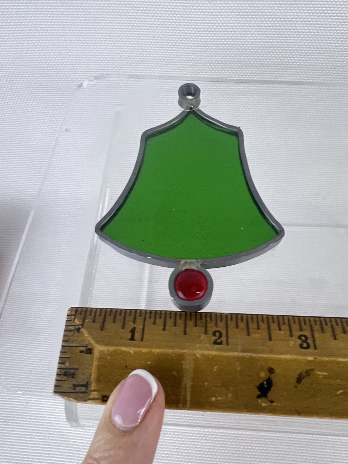 • VINTAGE HANDMADE Stained Glass Christmas Bell SUN CATCHER ORNAMENT Green