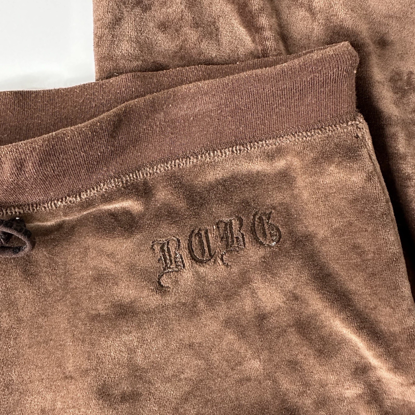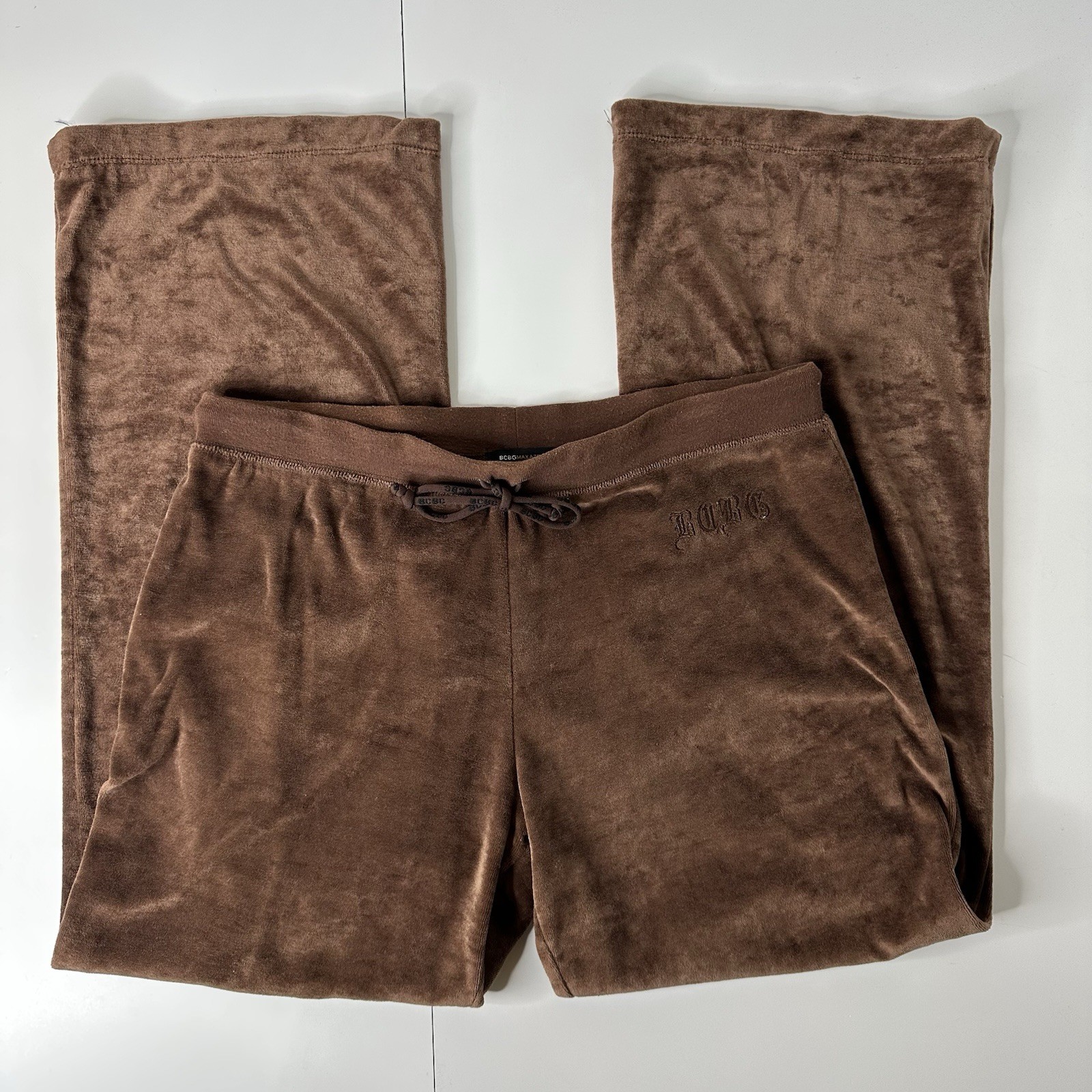 BCBG Maxazria Brown Velour Track Pants Sz L Pull On Logo Loungewear Vintage Y2K