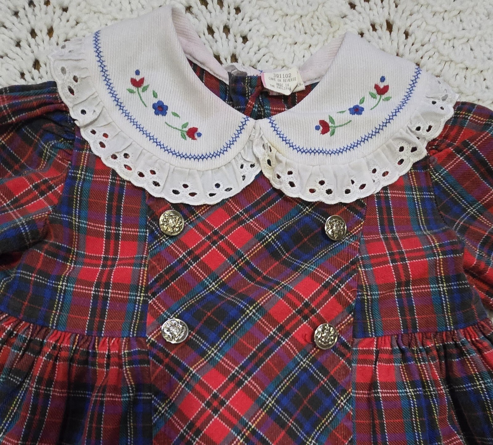 Vintage Girls Dress Sz 4 Red Plaid Lace Ruffle Long Sleeves Holiday Cottagecore