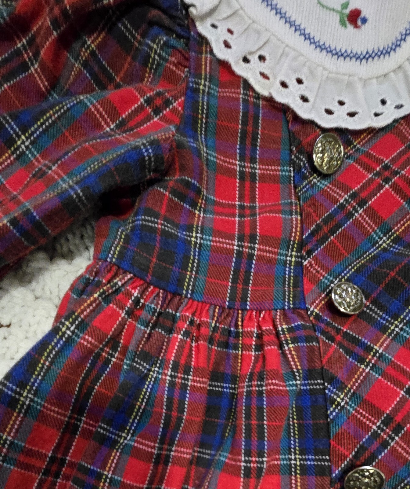как выглядит Vintage Girls Dress Sz 4 Red Plaid Lace Ruffle Long Sleeves Holiday Cottagecore фото