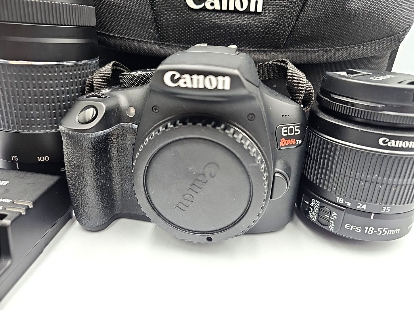Canon EOS Rebel T6 DSLR Camera, EFS 18-55mm EF 75-300mm Lens With Carry Bag