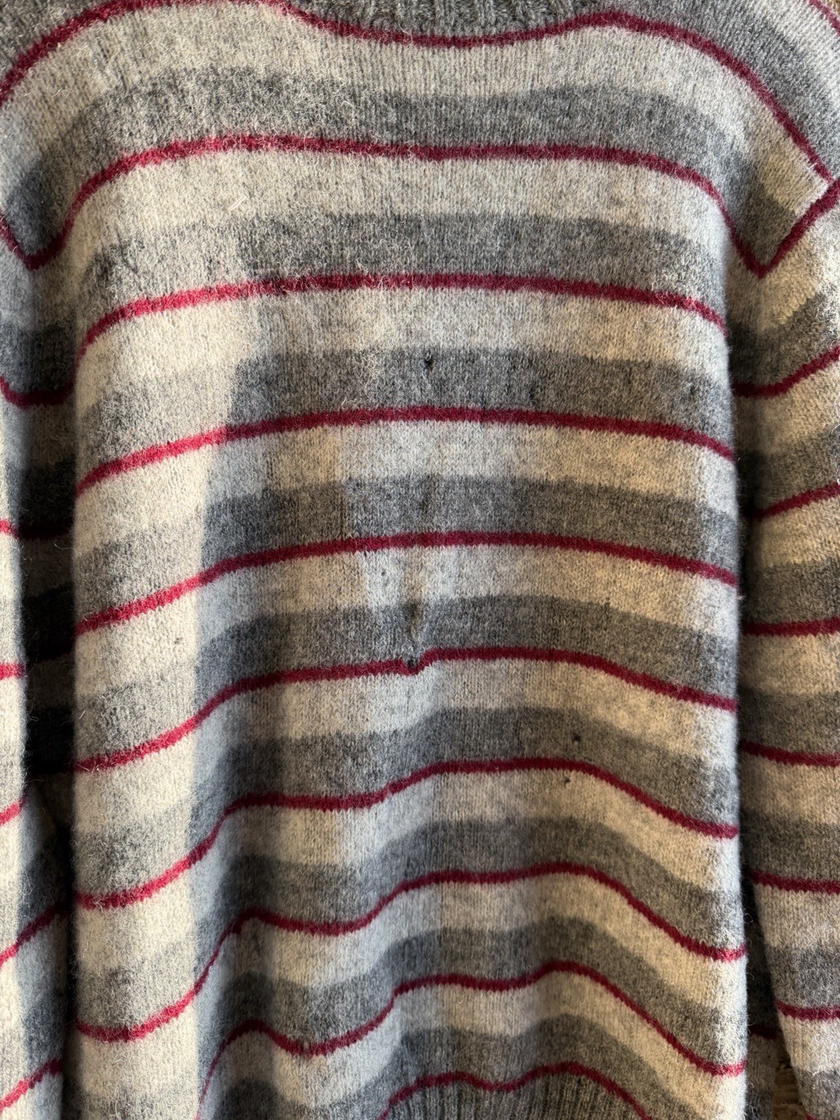 Vintage LL Bean 100 Shetland Wool Red and Gray Stripped Sweater