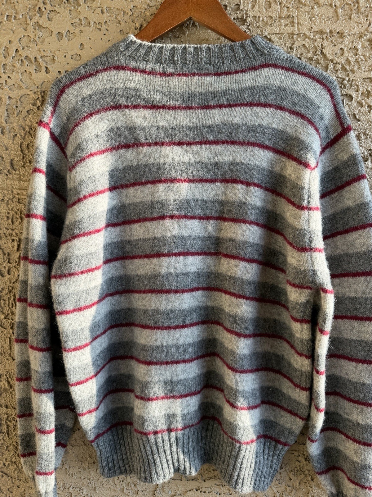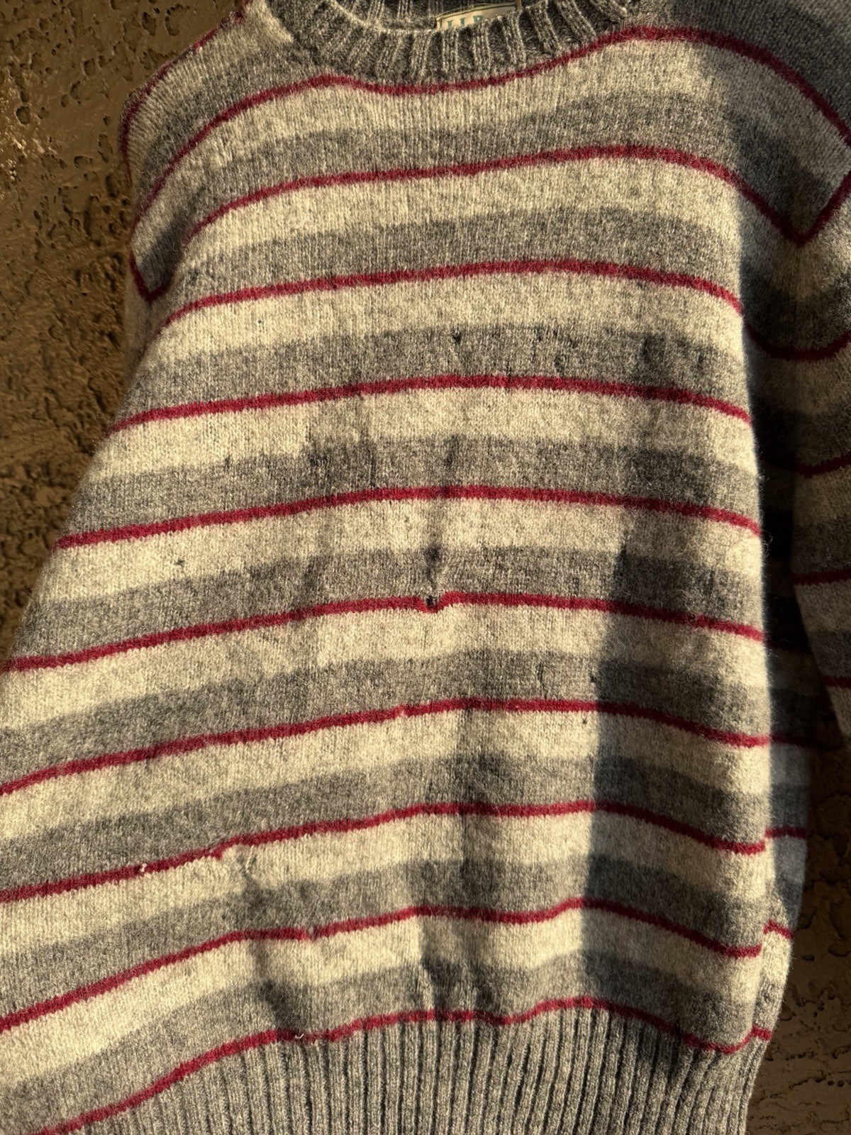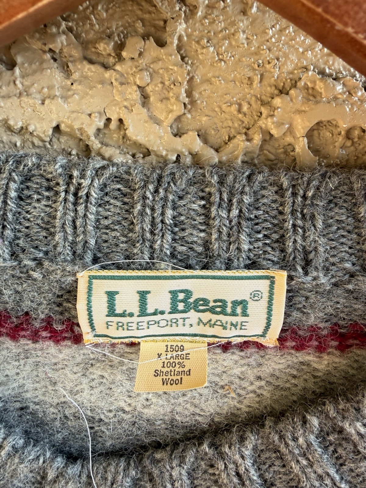 как выглядит Vintage LL Bean 100 Shetland Wool Red and Gray Stripped Sweater фото