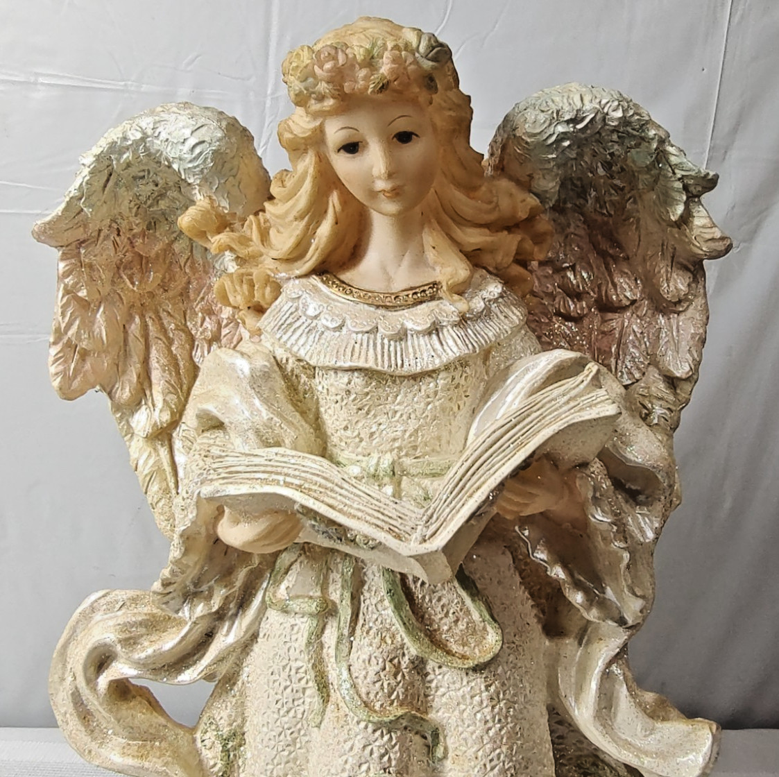 Christmas Angel Figurine Large 14 Sparkly Holding Song Book Wings Resin Statue