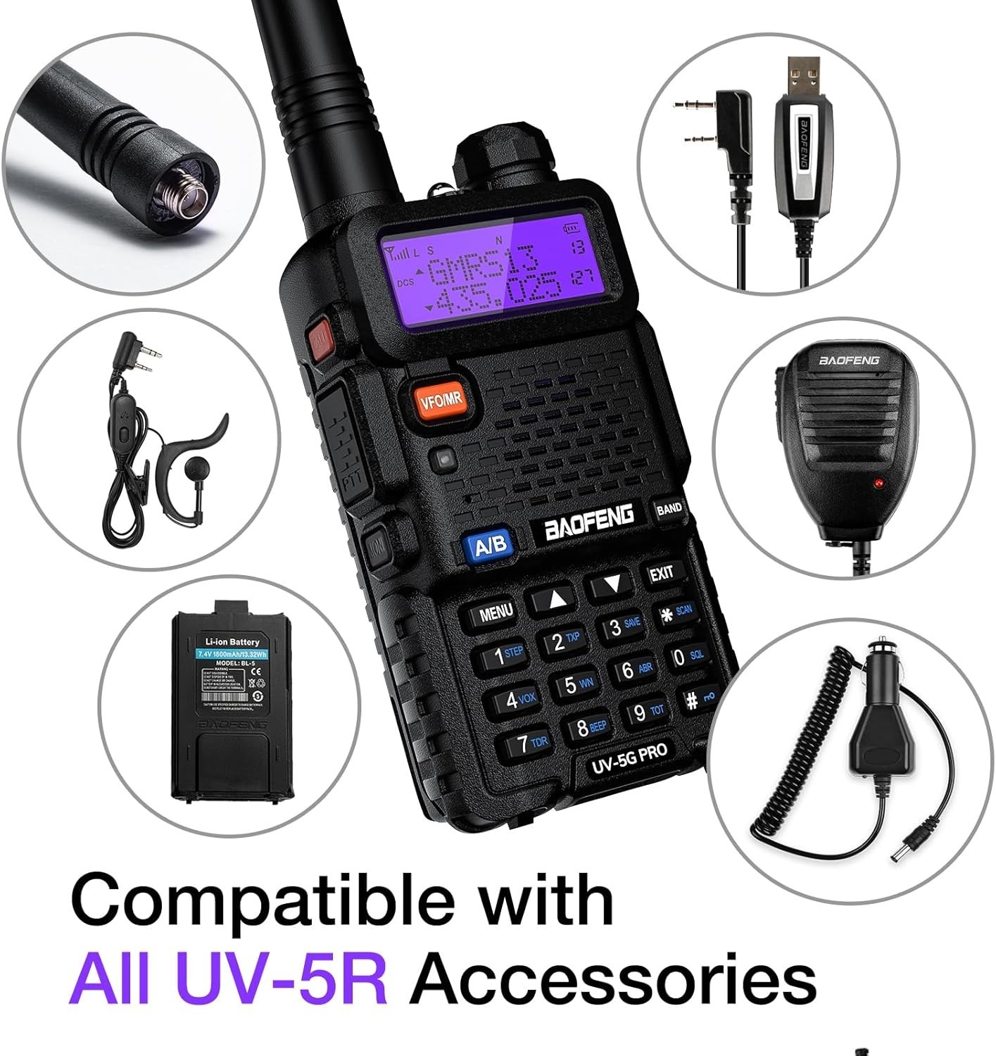 Rechargeable UV-5G PRO GMRS Two Way Radio with 8-Band Receiver NOAA Alerts