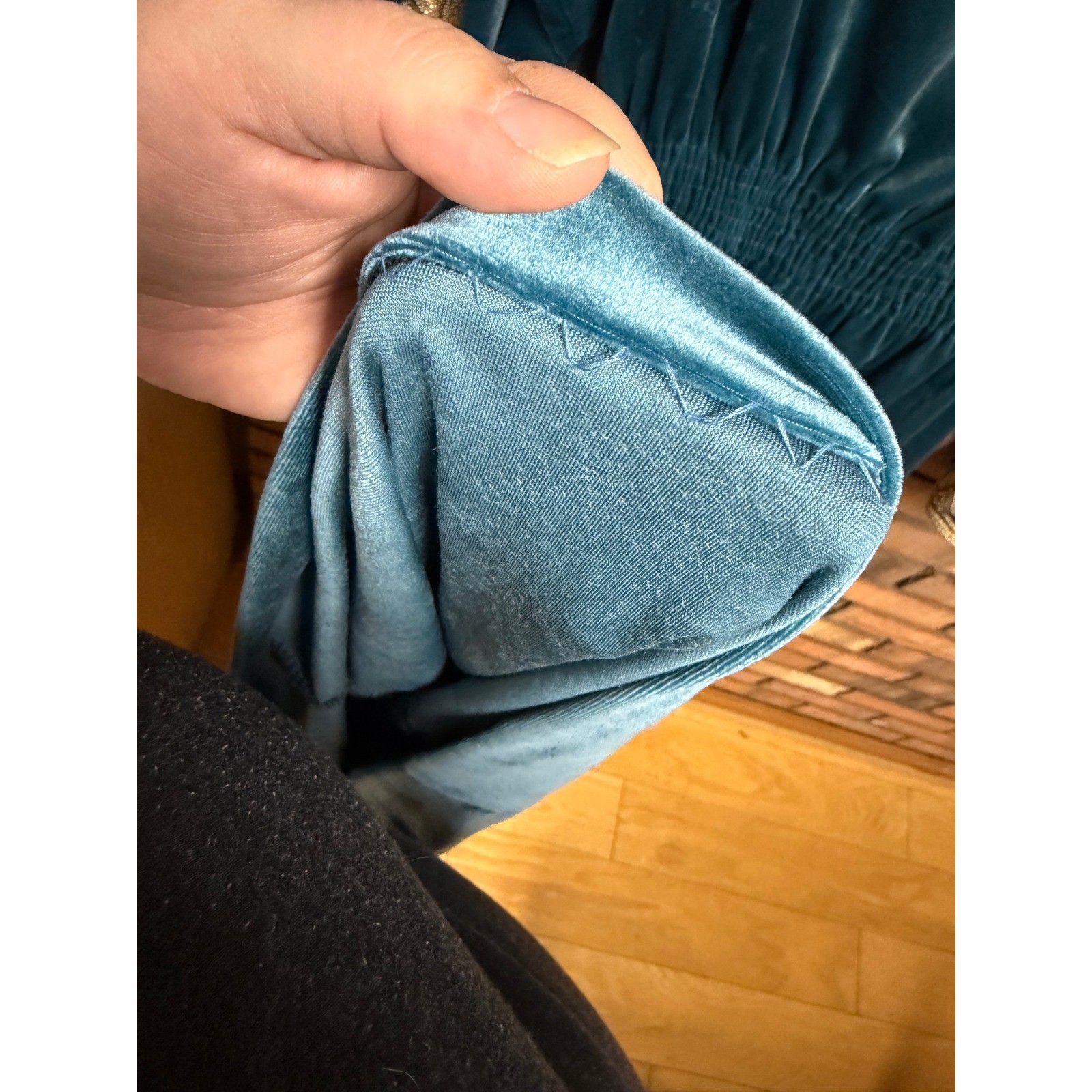 как выглядит Blue velvet long sleeve embroidered kaftan dress фото