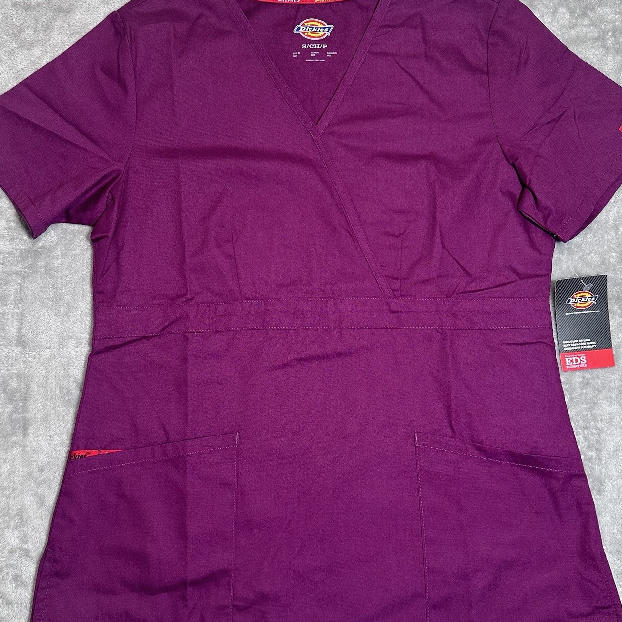 Dickies Everyday Scrubs Style 86806 V-Neck Scrub Top in Wine Size Small