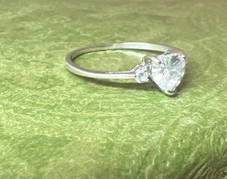 как выглядит Vintage CZ Sparkly Heart 925 Sterling Silver Promise Love Dainty Ring 8.75 фото