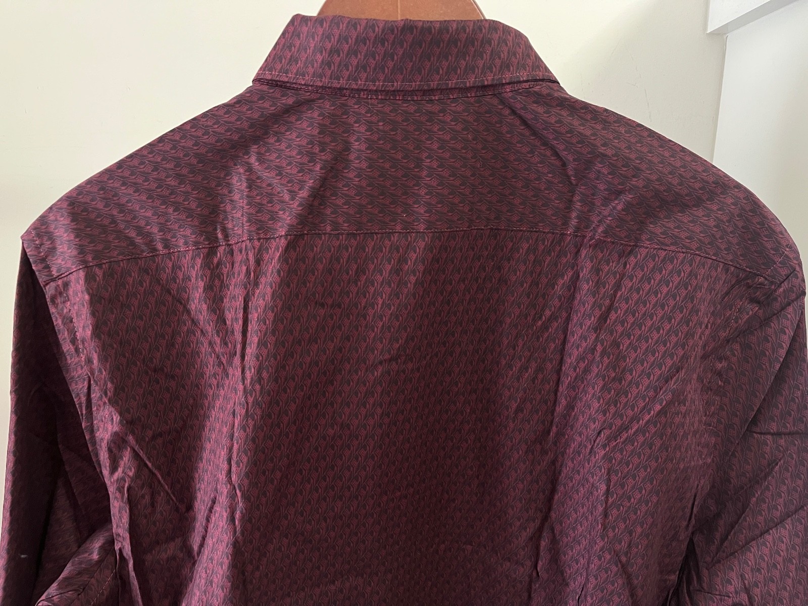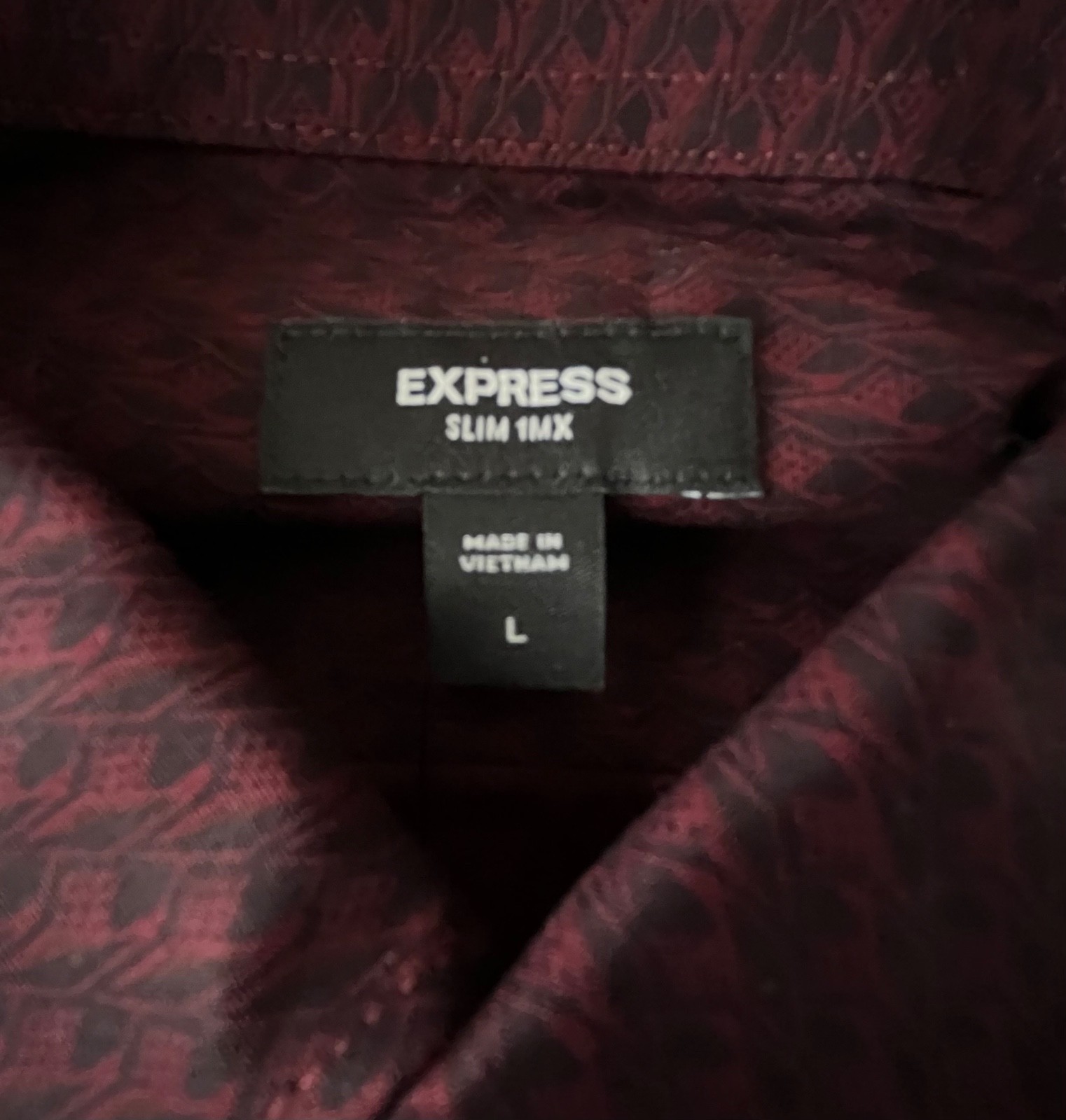 как выглядит NWT Express 1MX Mens Maroon/Black Button Down Dress Shirt Sz Large Slim Fit 60 фото