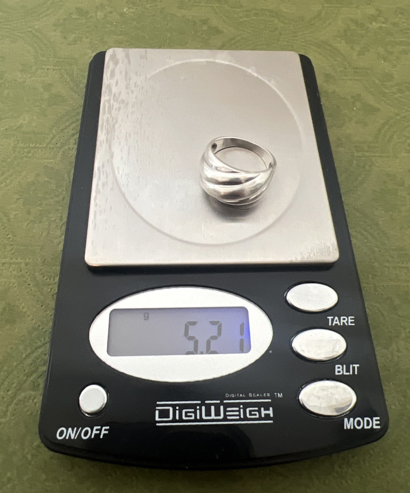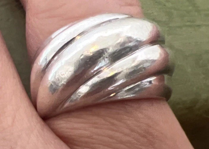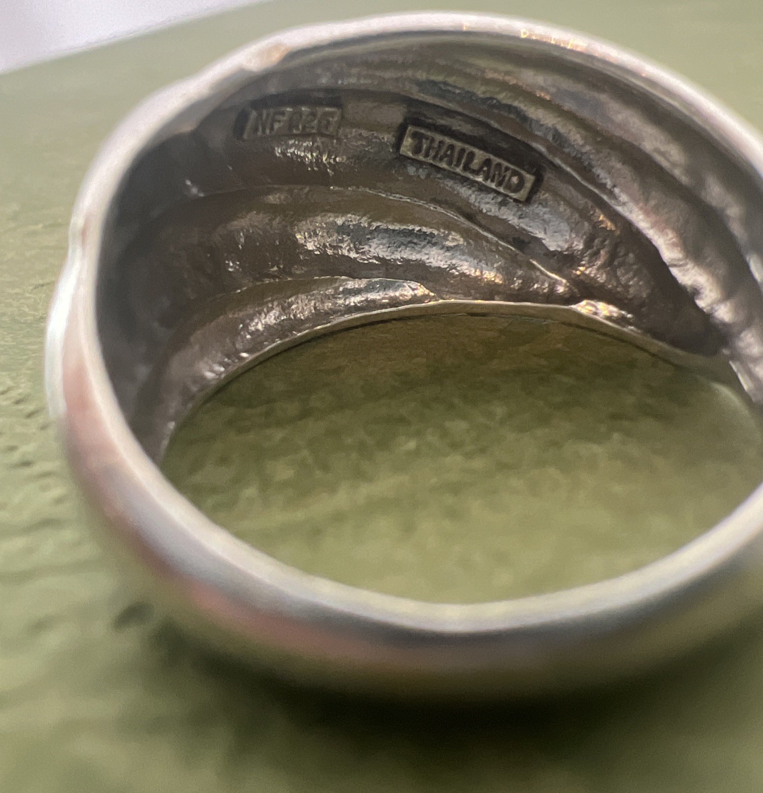 как выглядит Vtg Solid Designer NF 925 Sterling Silver Dome Ribbed Modernist Wave Ring 7.25 фото