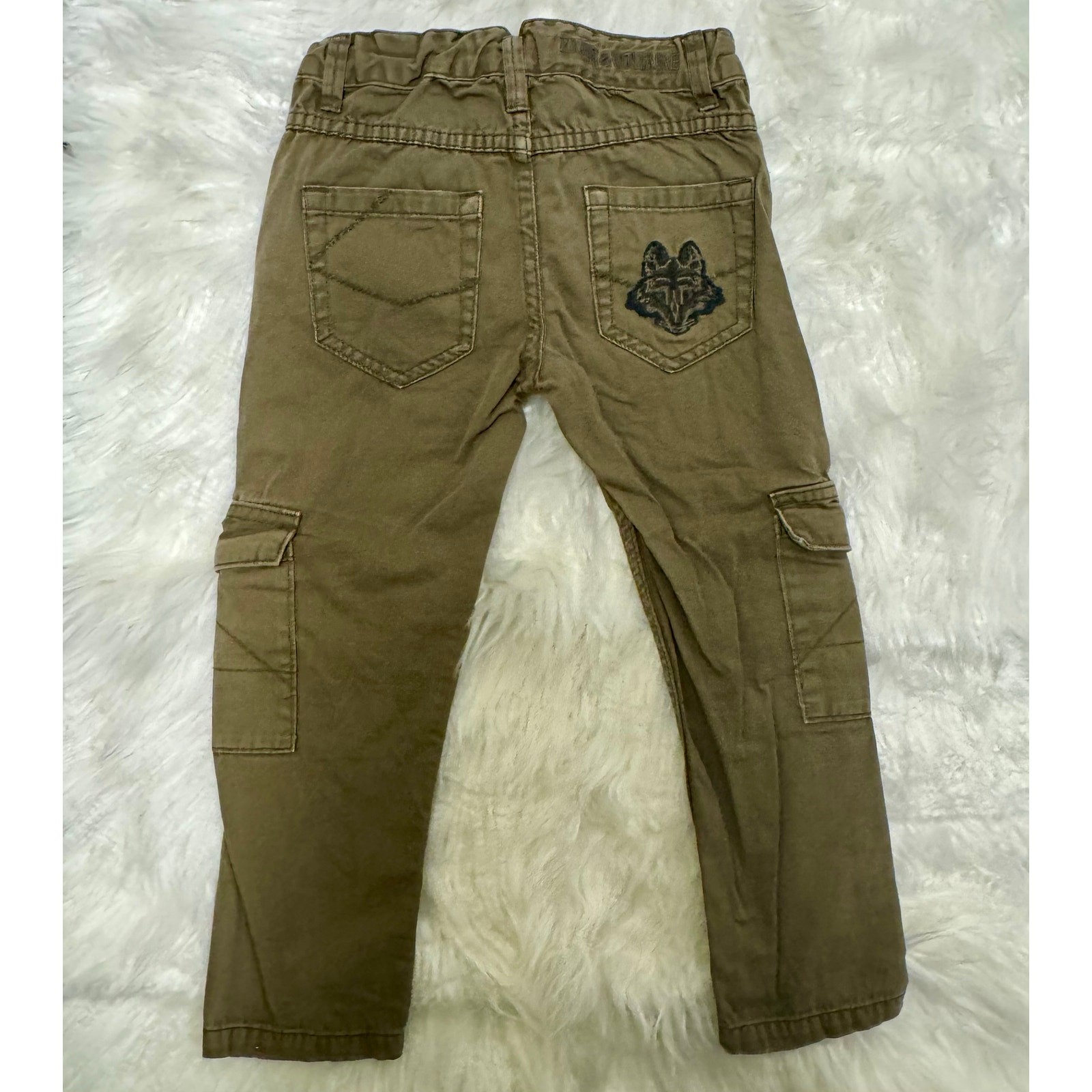 как выглядит Zadig Voltaire Skinny Cargo Pants Embroidered Wolf Army Green Kids Sz 4T фото