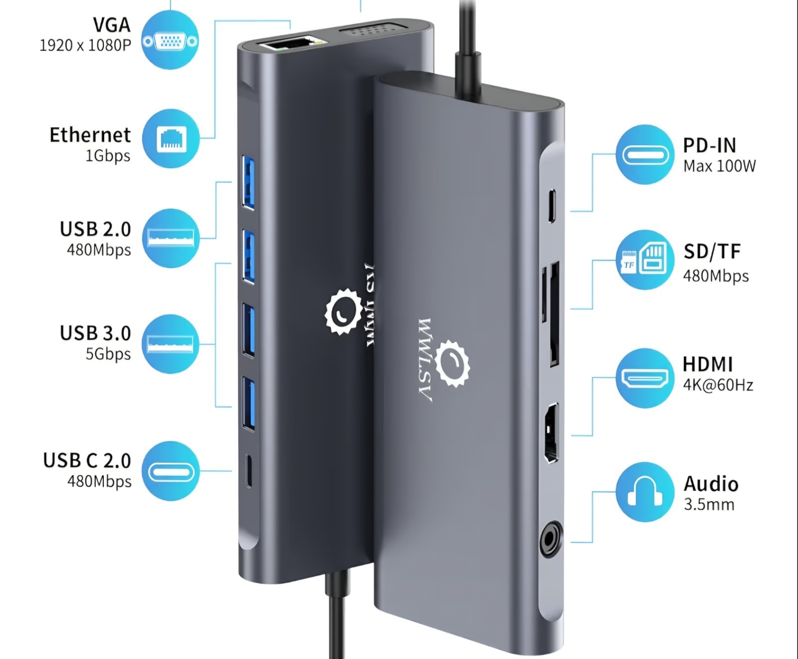 как выглядит 12 in 1 USB C Docking Station Dual Monitor HDMI VGA 4K60W PD Ethernet USB Hub фото