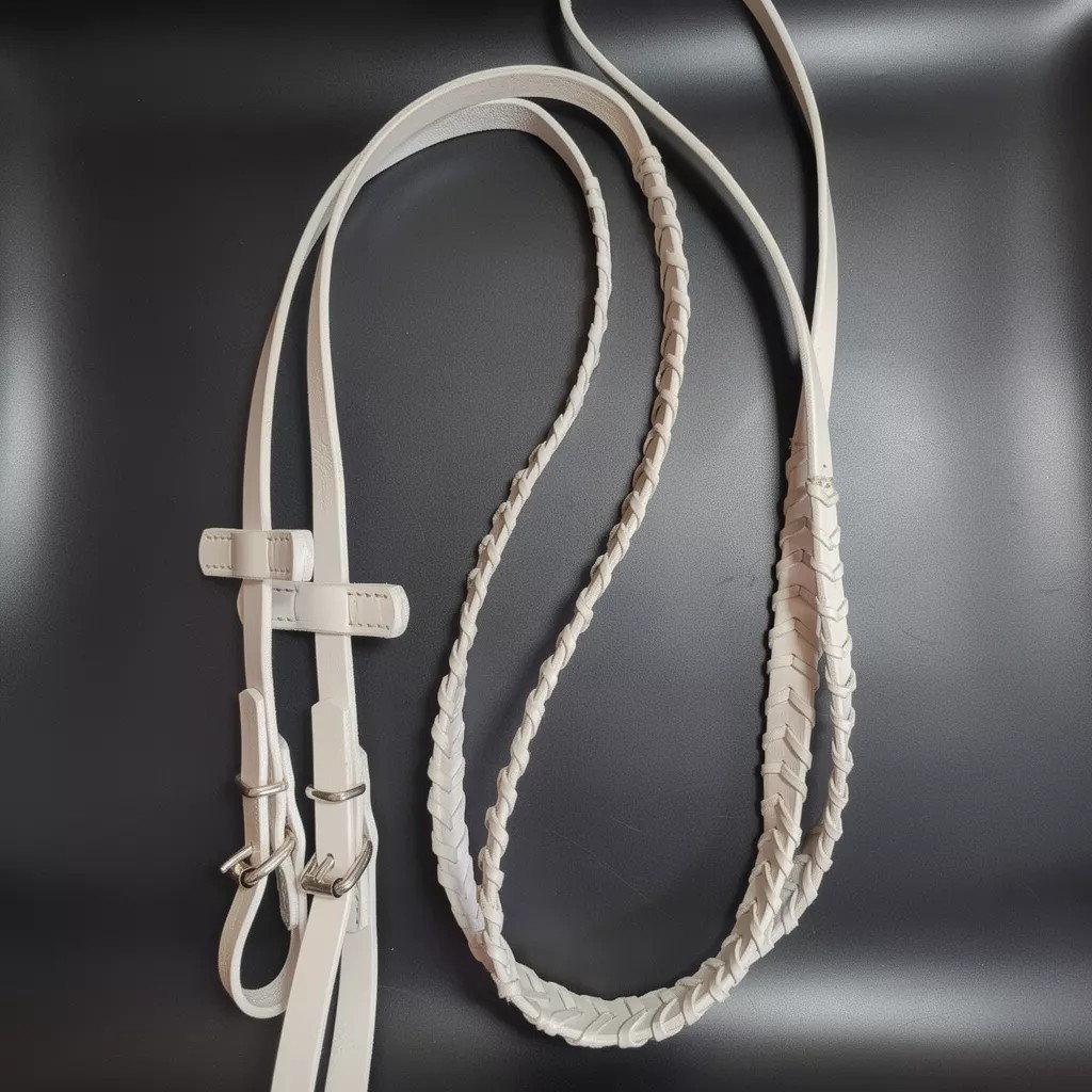 как выглядит Handmade Leather Reins with Braided Leather Overlay /With Bit фото