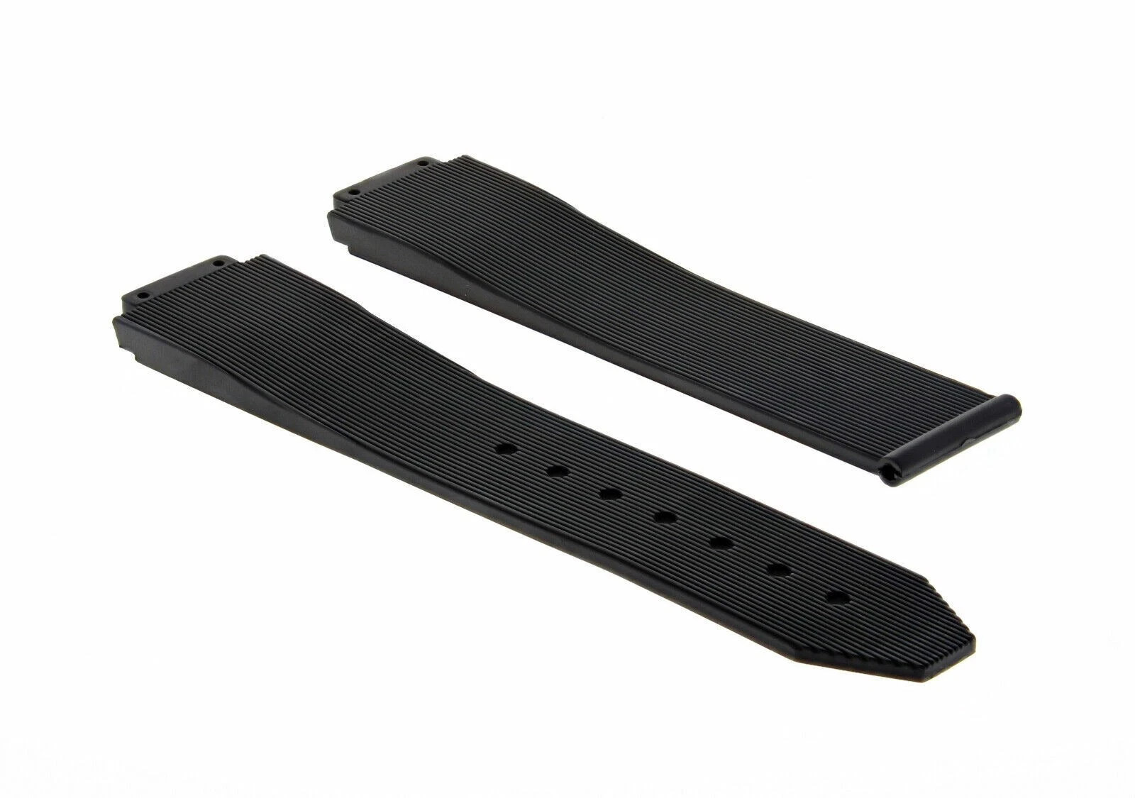 25MM RUBBER WATCH STRAP BAND FOR HUBLOT H BIG BANG DEPLOYMENT CLASP WATCH BLACK