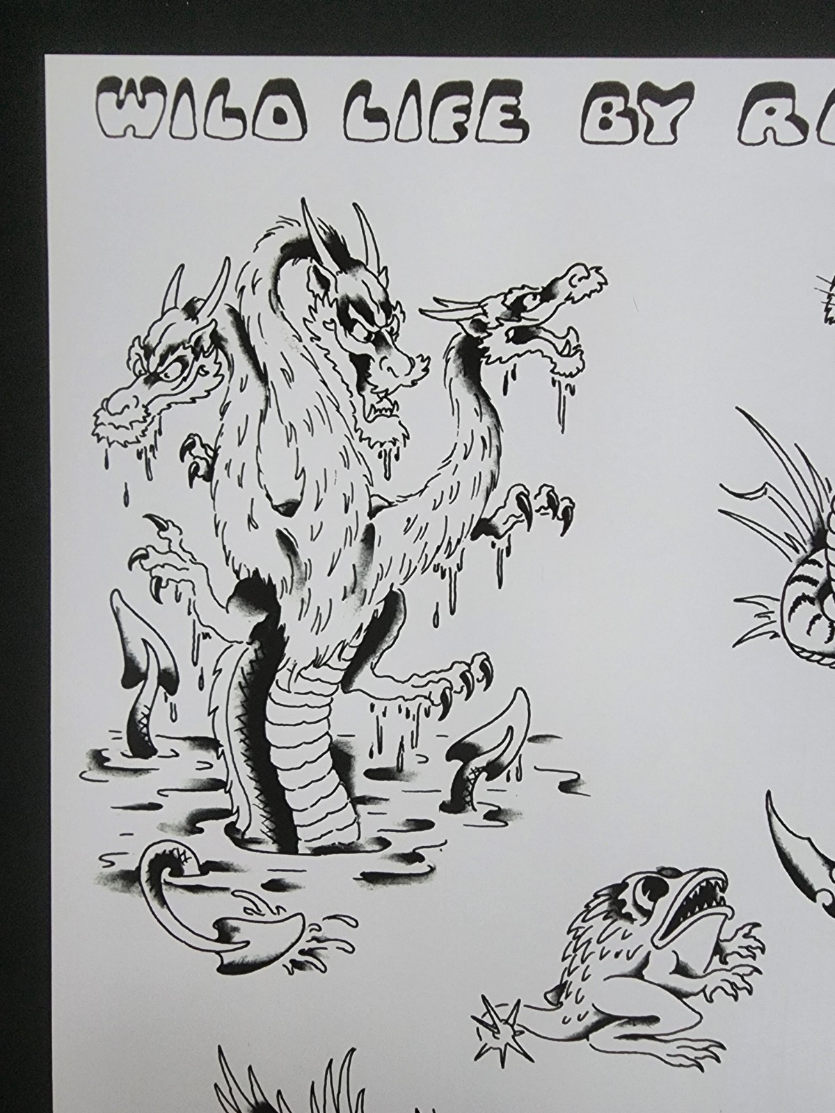 vintage 1982 michael mike rollo malone wild life tattoo flash 16x20 gicleeprint