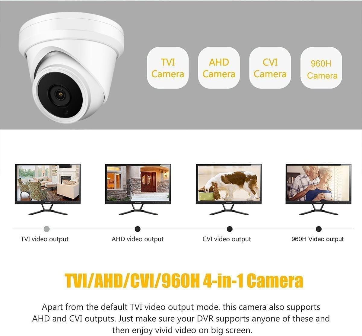 5MP Turret TVI AHD CCTV 4IN1 Camera 65ft IR Night Vision Metal Housing 2.8mm