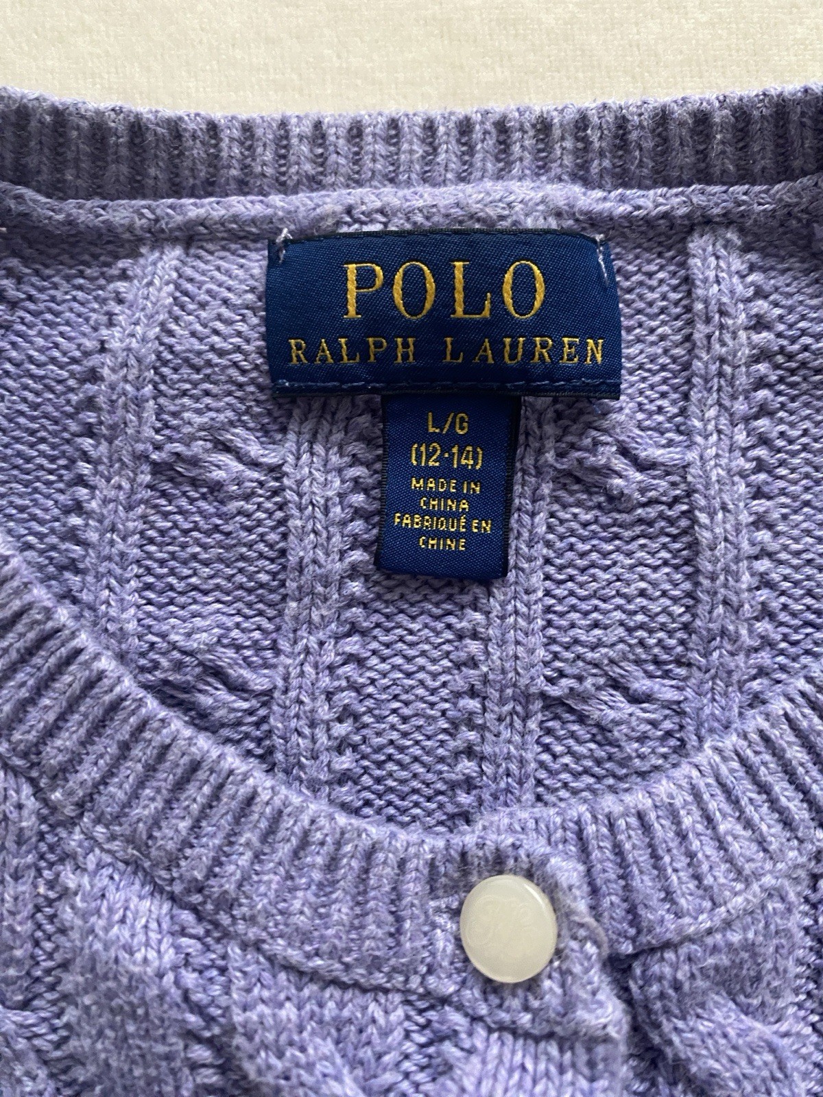 Polo Ralph Lauren Cable Cotton Peplum Cardigan Girls Size L 12-14, Purple/Violet