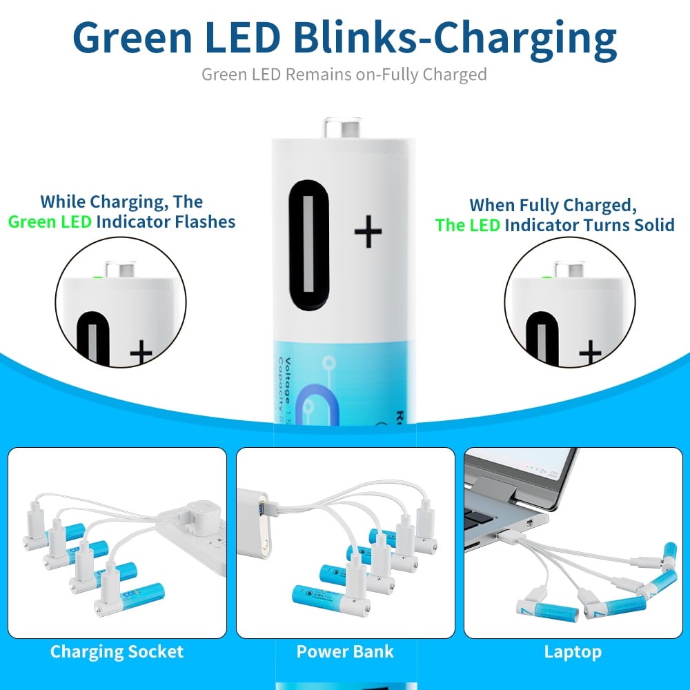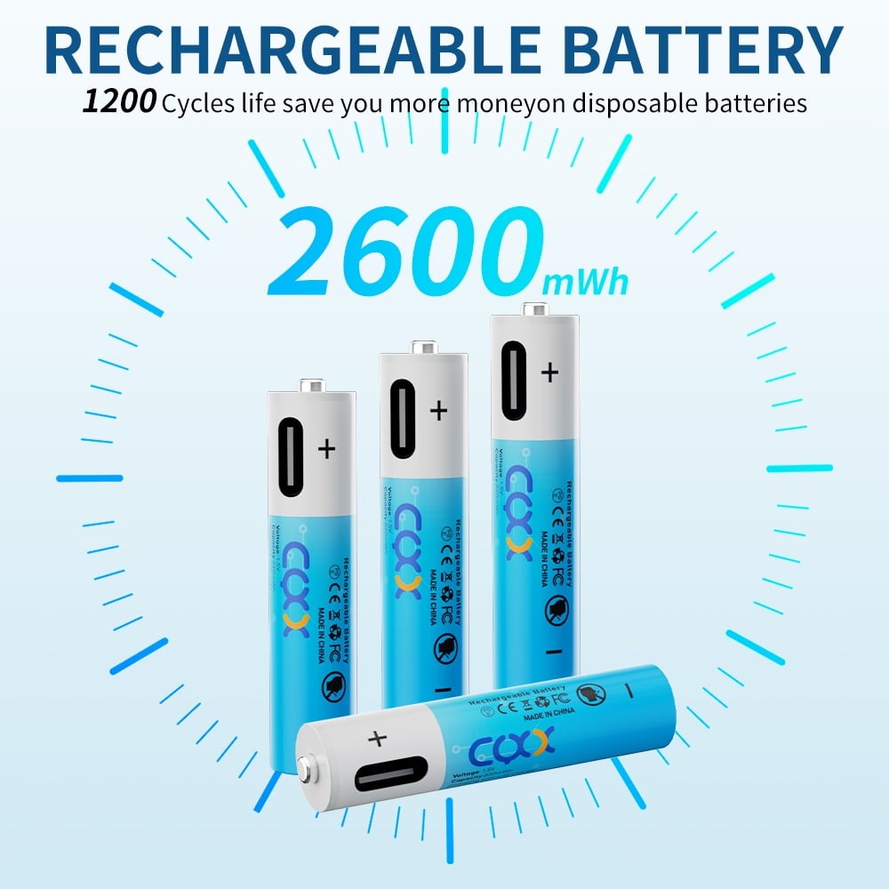 4Pcs 1.5V 2600mWh AA AAA USB-C Rechargeable Lithium ion Battery w/Charging Cable