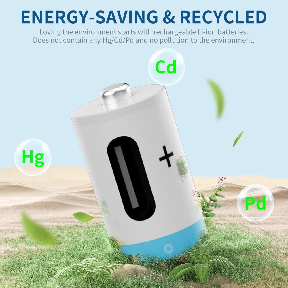 как выглядит 4Pcs 1.5V 2600mWh AA AAA USB-C Rechargeable Lithium ion Battery w/Charging Cable фото