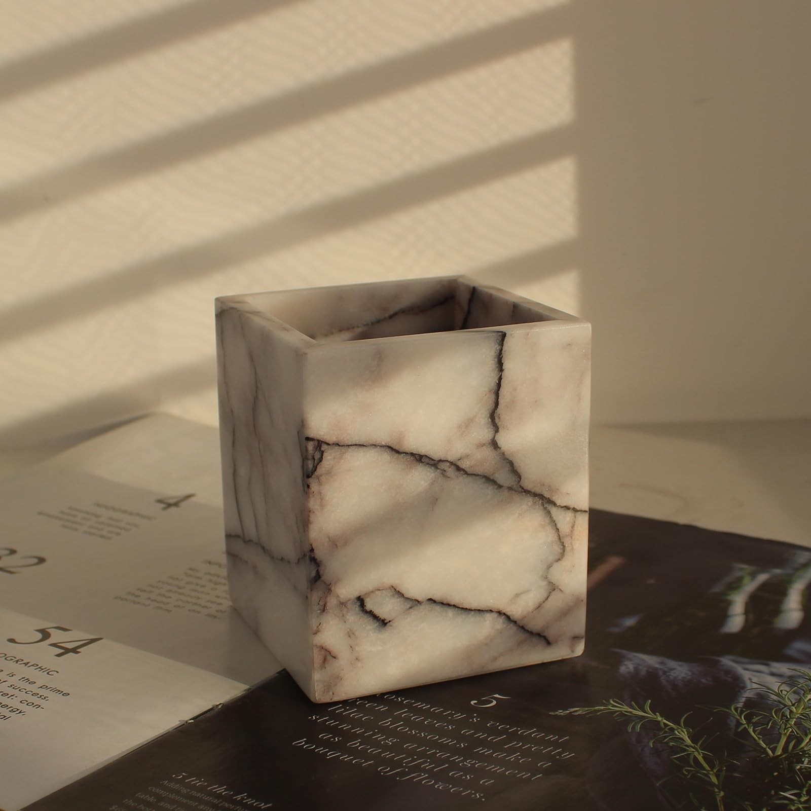 Lilac Marble Toothbrush Holders for Bathroom, Natural Marble Canisters, Makeu...