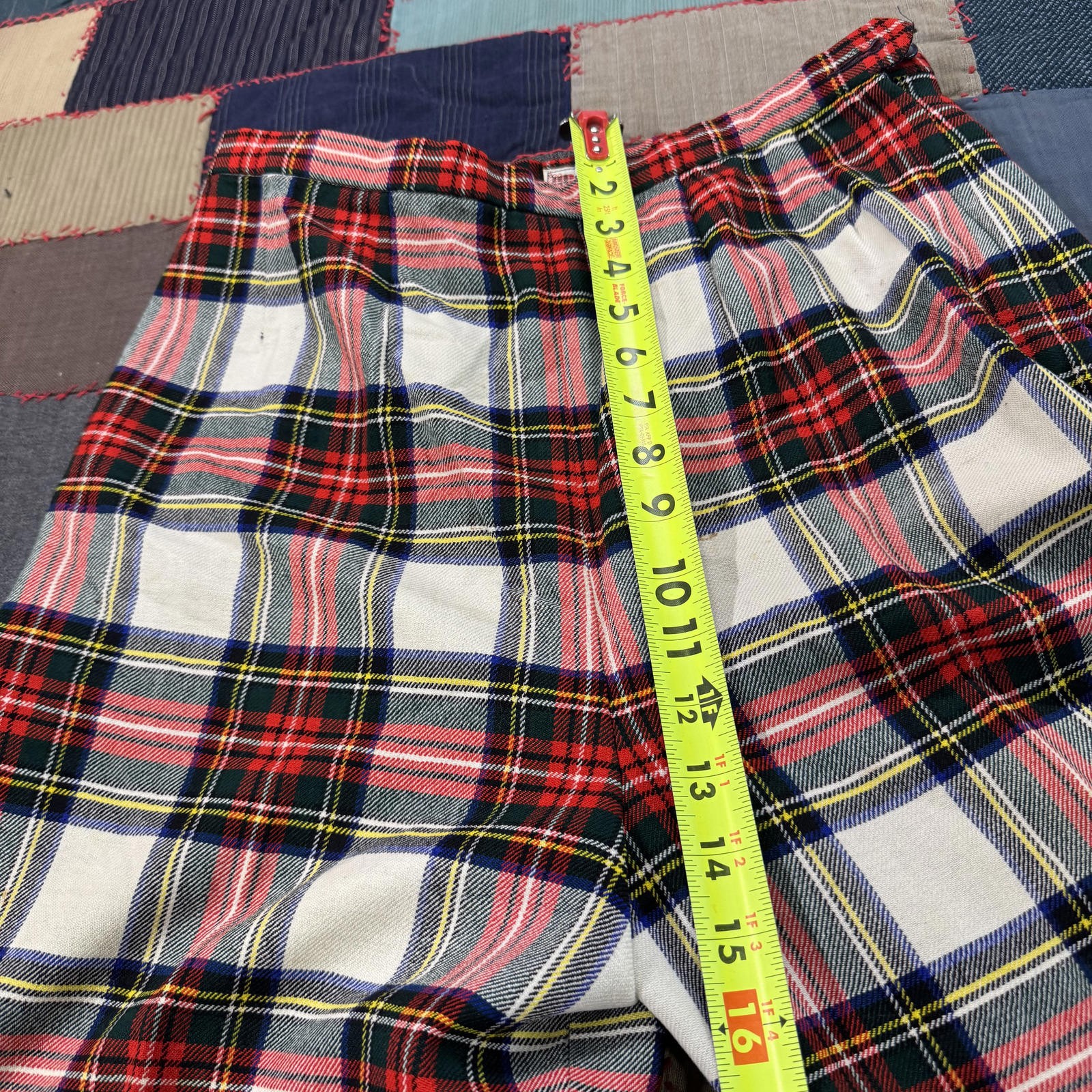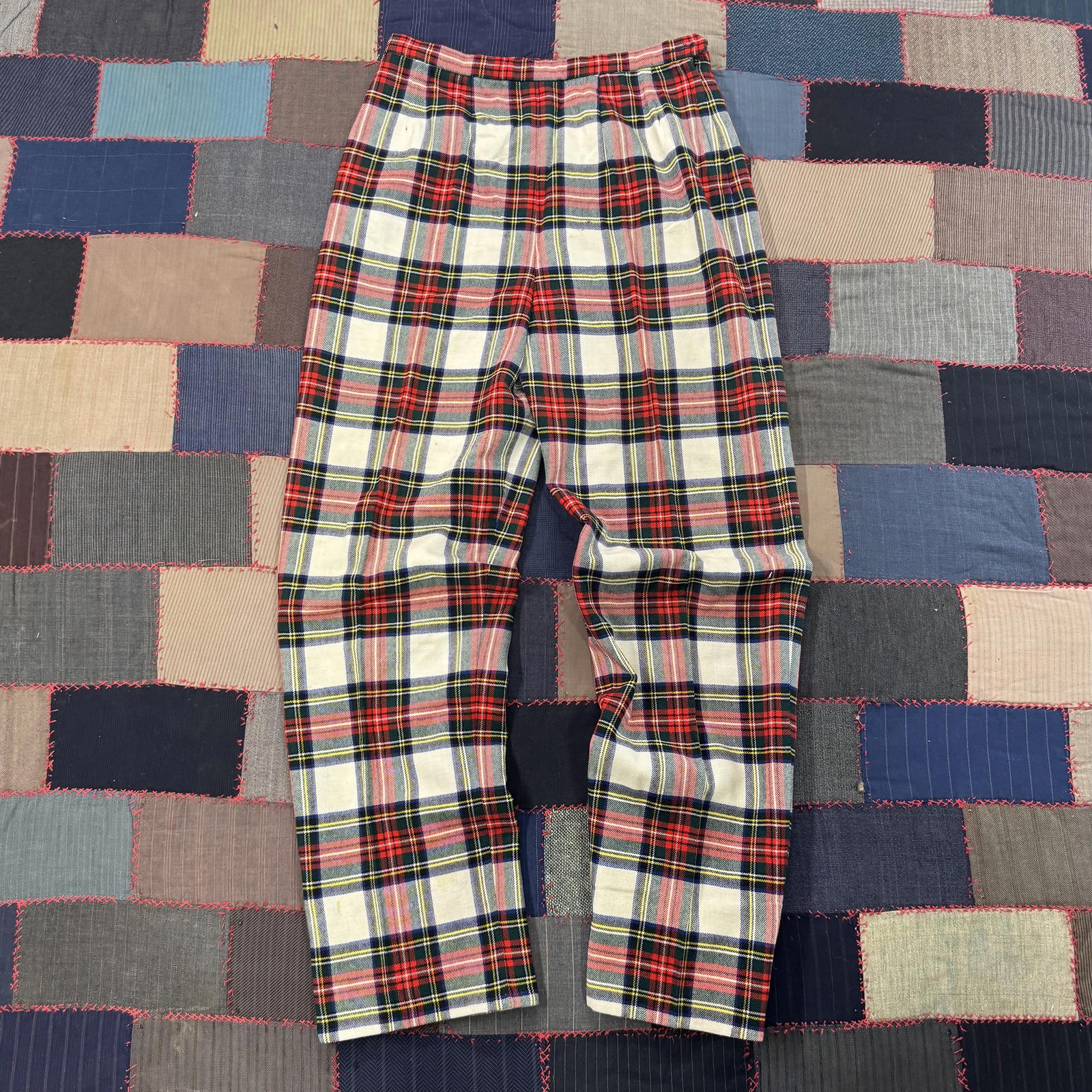 Vintage 70s High Waisted Tweed Shop Red Plaid Christmas Disco Pants