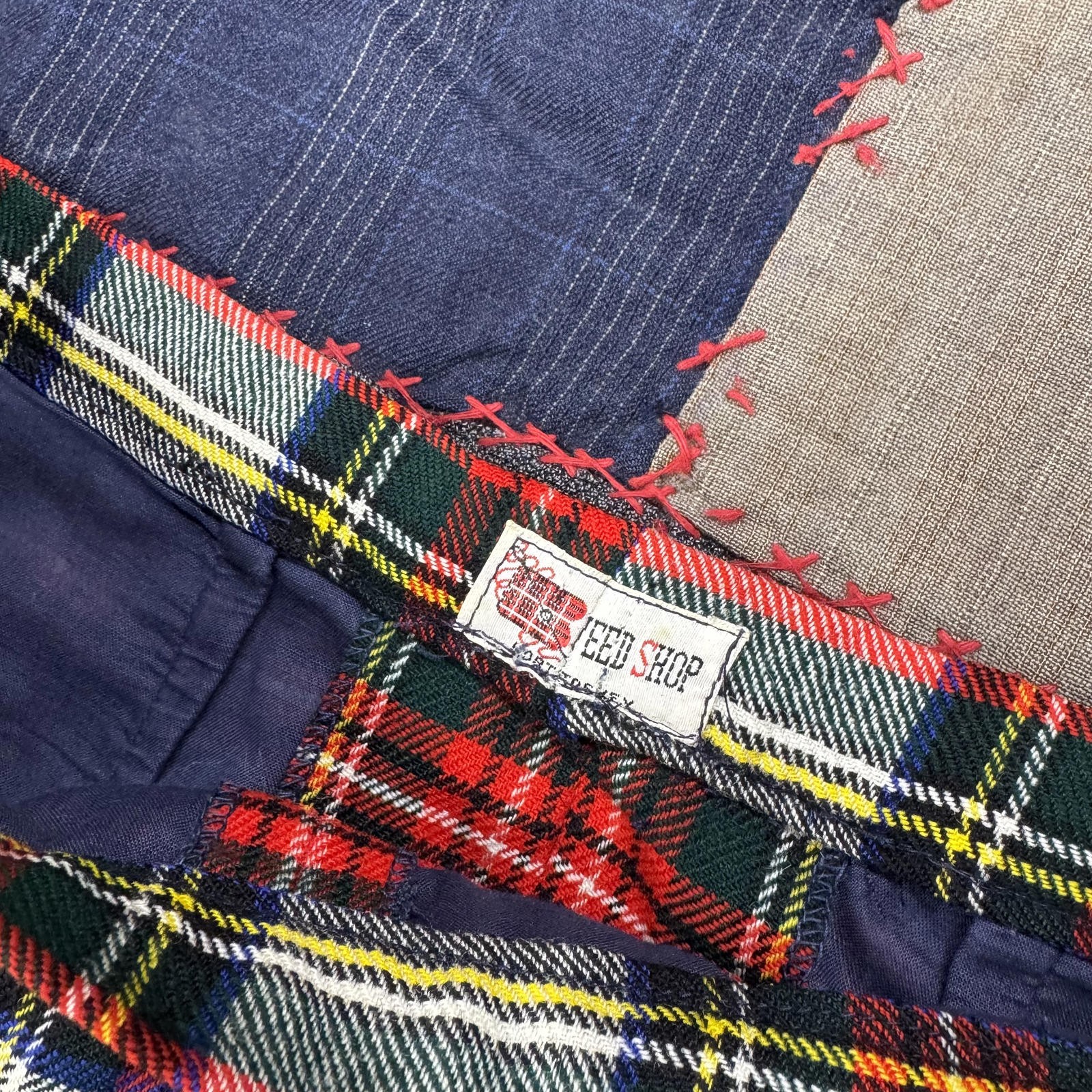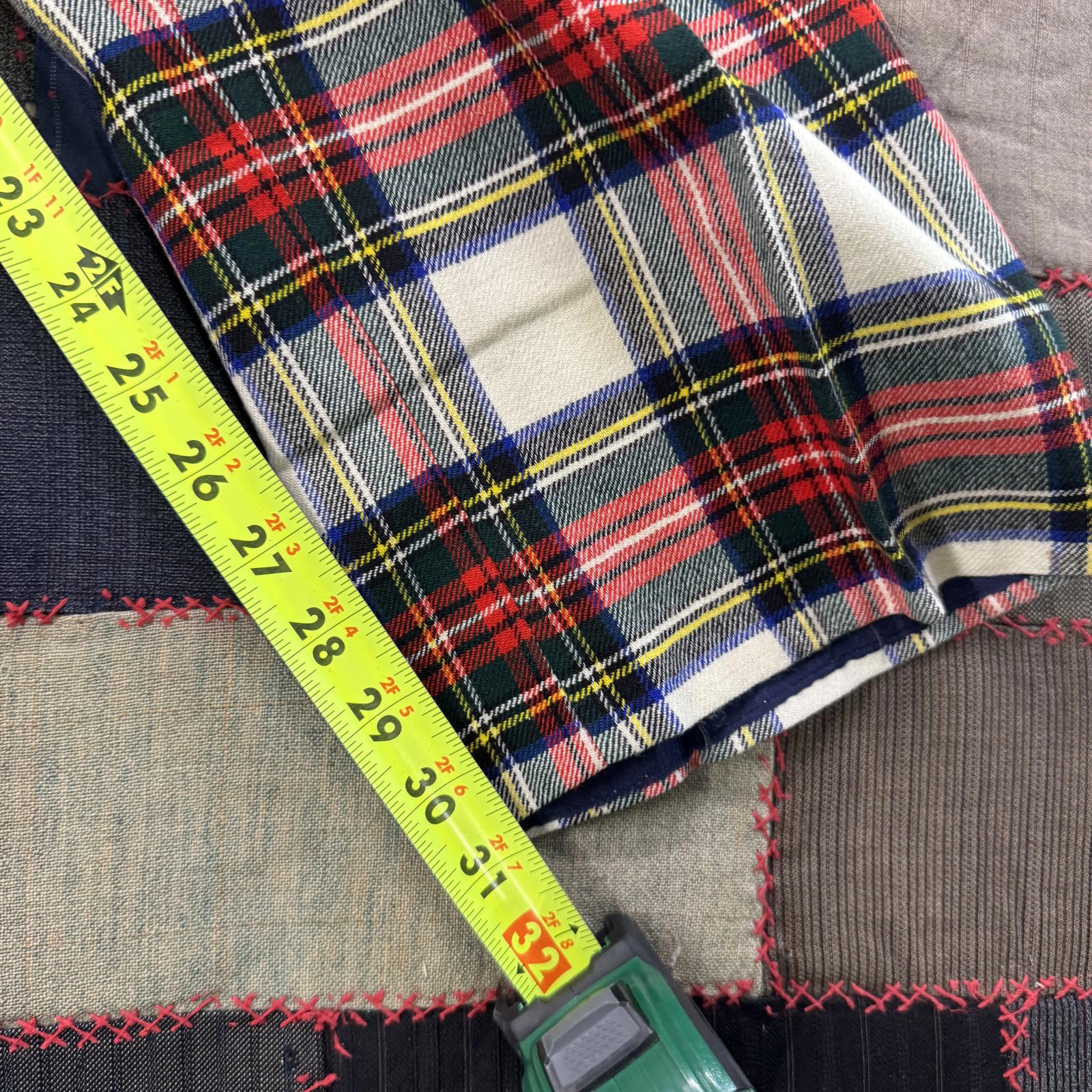 как выглядит Vintage 70s High Waisted Tweed Shop Red Plaid Christmas Disco Pants фото