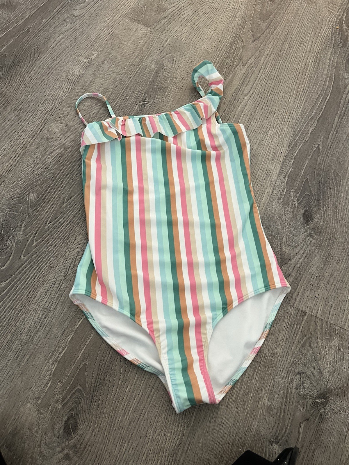 как выглядит Abercrombie Kids One Piece Swimsuit Multicolor Striped Size 13/14 NWT Summer фото