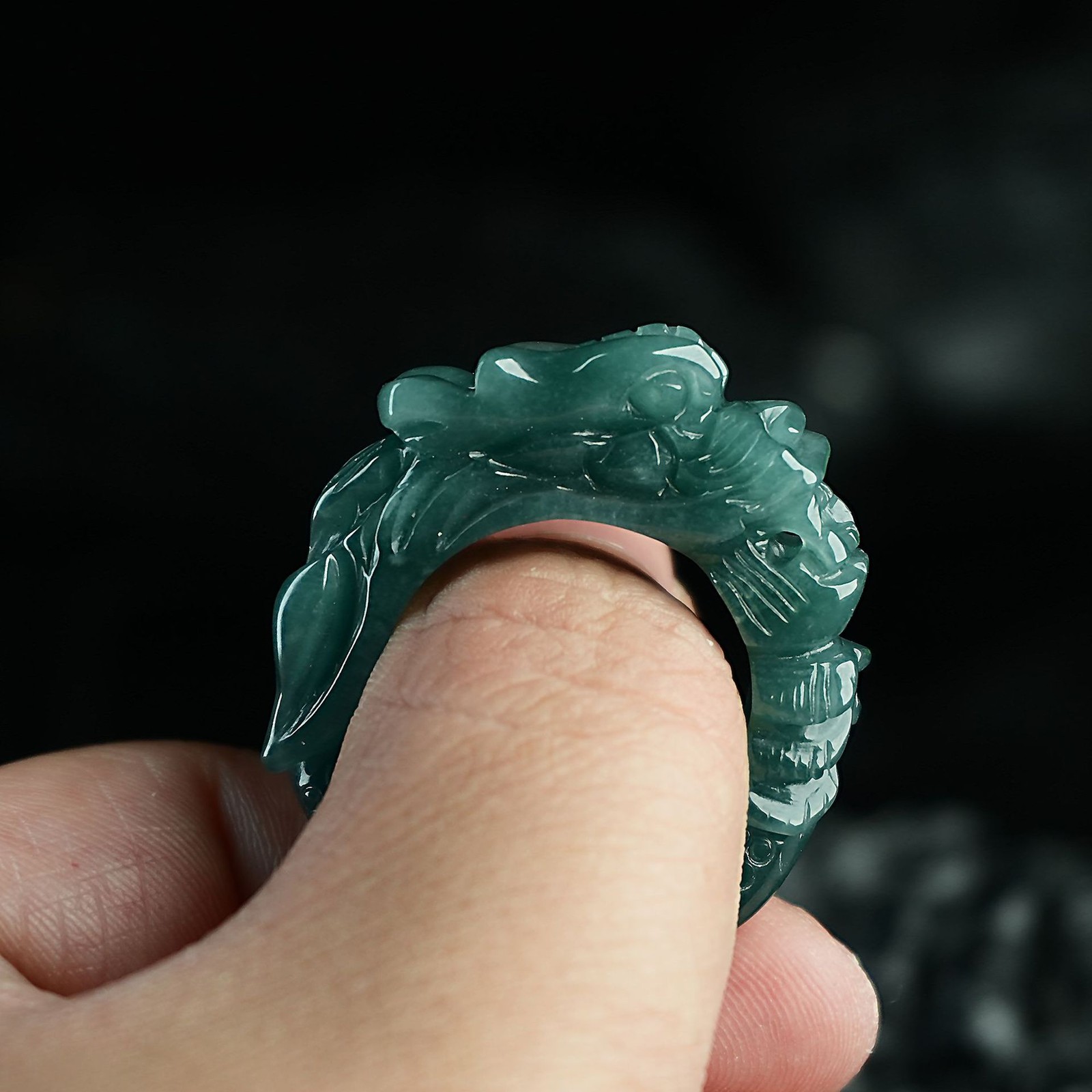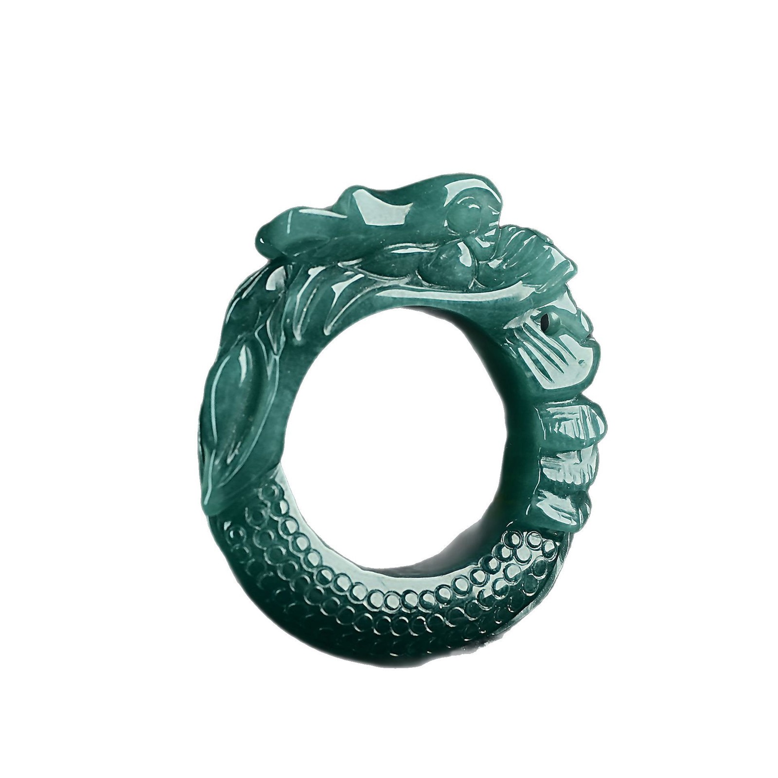 как выглядит Certified natural A-grade jadeite Blue water Carving mighty dragon coiled ring фото